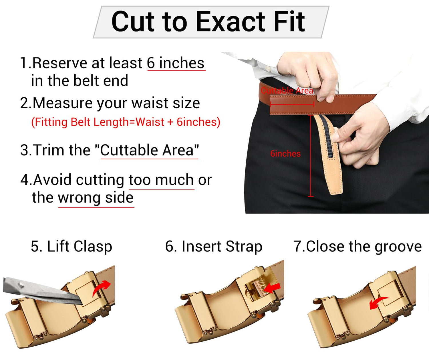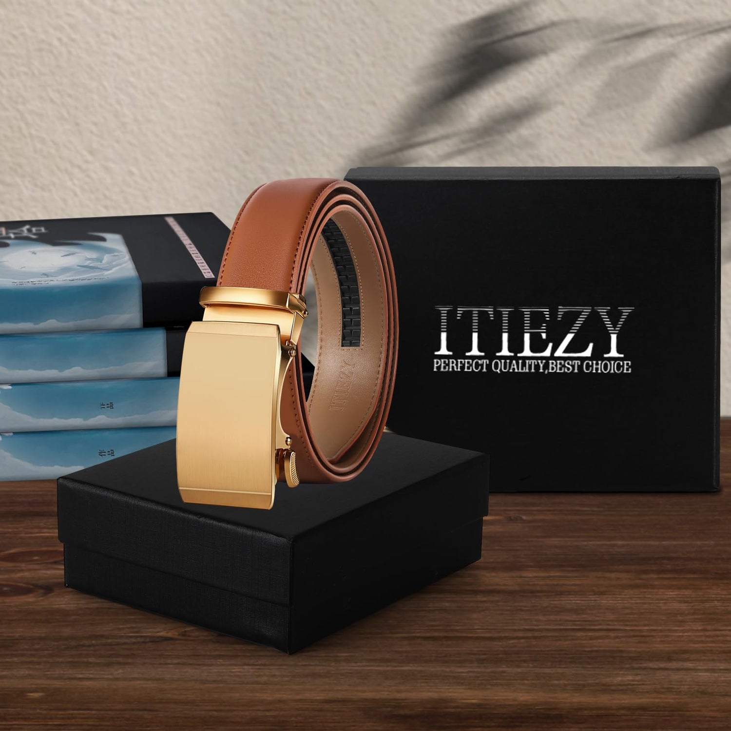 ITIEZY Gürtel Herren, Automatik Ledergürtel für Herren Business Anzug, Gürtel Ratsche 35mm ohne Löcher, Größe Angepasst