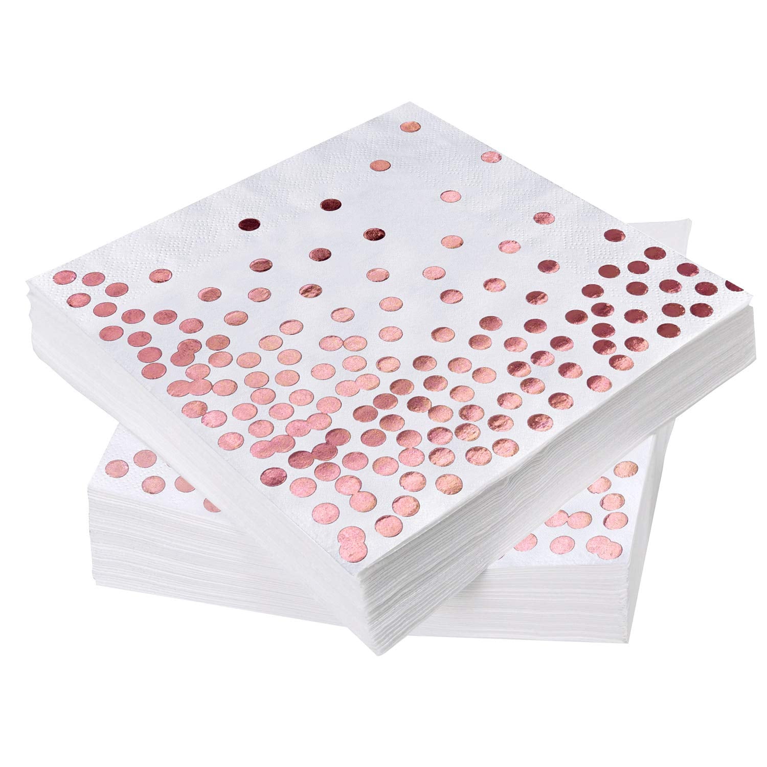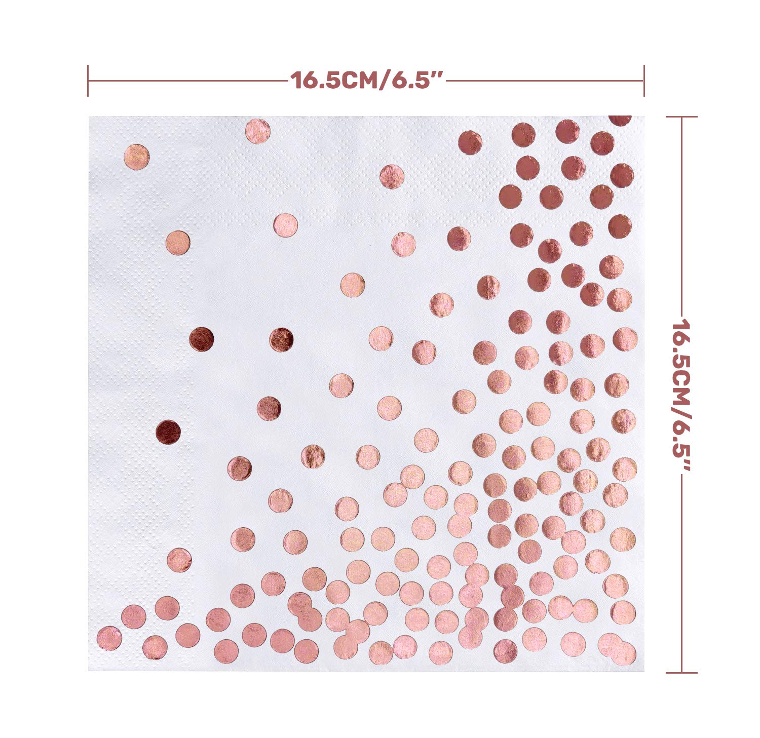 • Party Servietten: Paket von 60 Stücke Party Servietten, dekorativ und praktische Tafeldeko für Rose Gold Geburtstag Party, geeignet für 60 Gäste