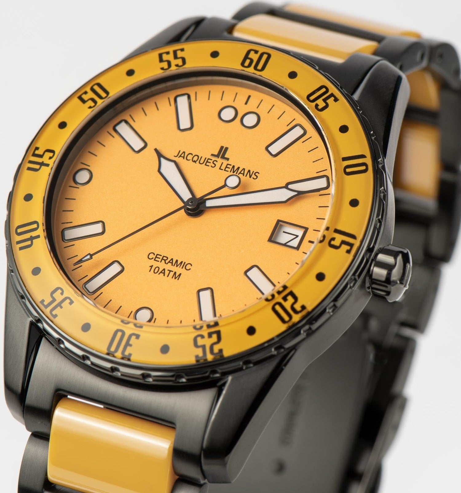 JACQUES LEMANS Damenuhr Liverpool Massiv Edelstahl/High-Tech-Ceramic massiv Edelstahl ip-Black 42-12I