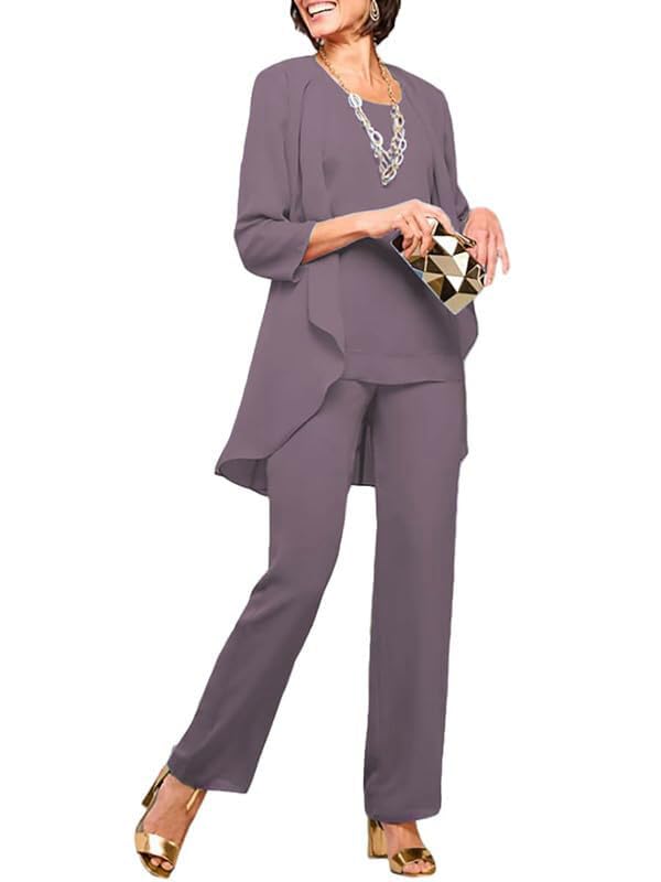 JAEDEN Mutter der Braut Hosenanzug 3 Teilig Chiffon Hosenanzüge für Damen Formell Festlich Abendanzug Mauve 48