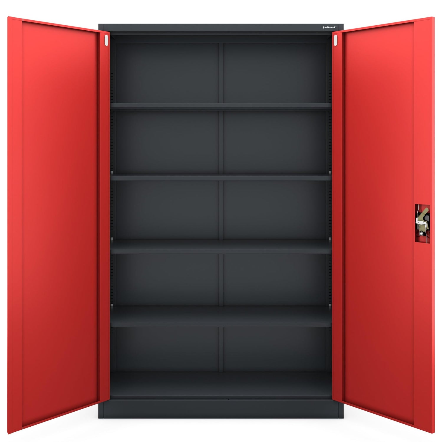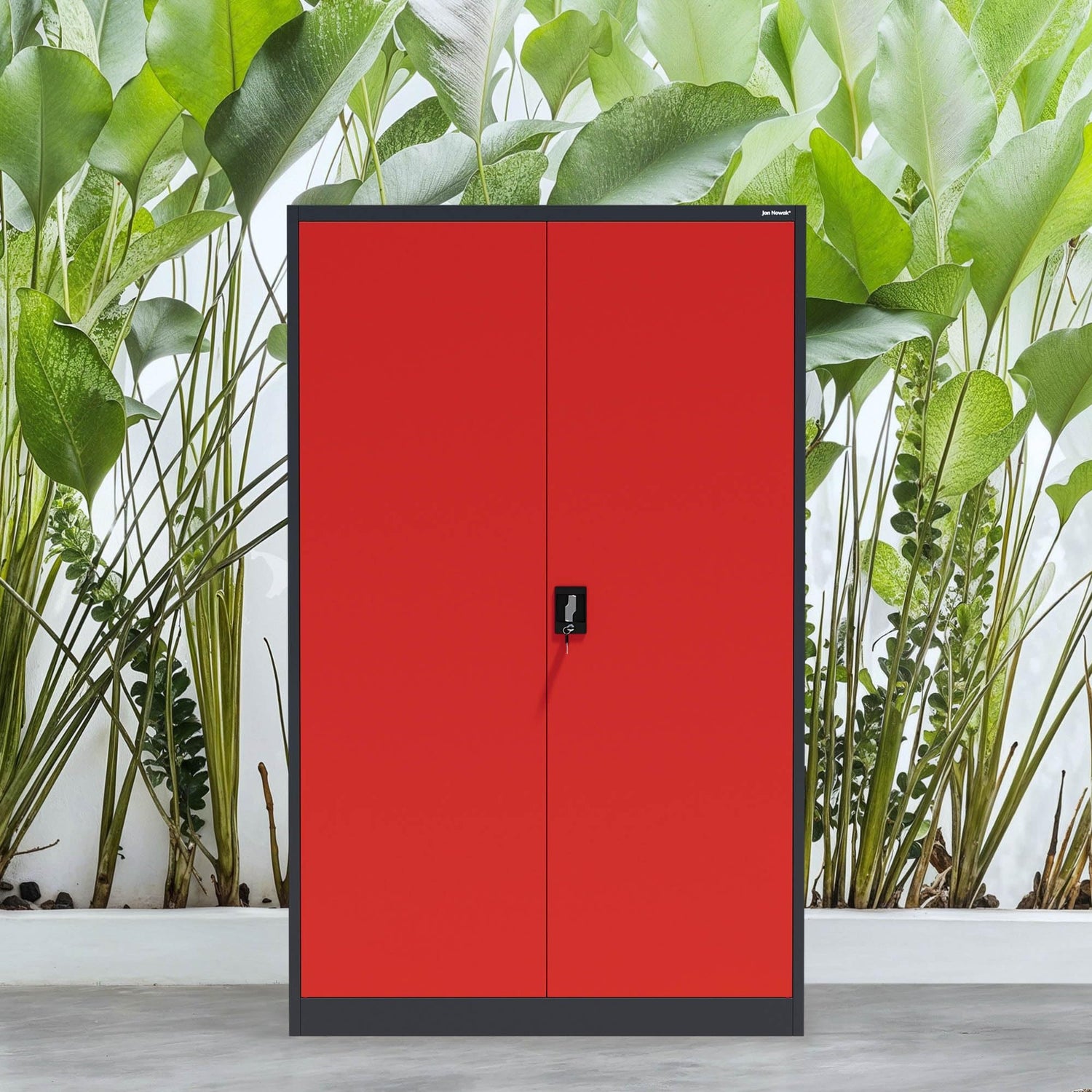 Jan Nowak Metallschrank Jan II 185 x 115 x 40 cm - Aktenschrank abschließbar mit 2 Türen, Mehrzweckschrank mit 5 Ebenen, Büroschrank aus Stahlschrank mit Pulverbeschichtung - Anthrazit-Rot