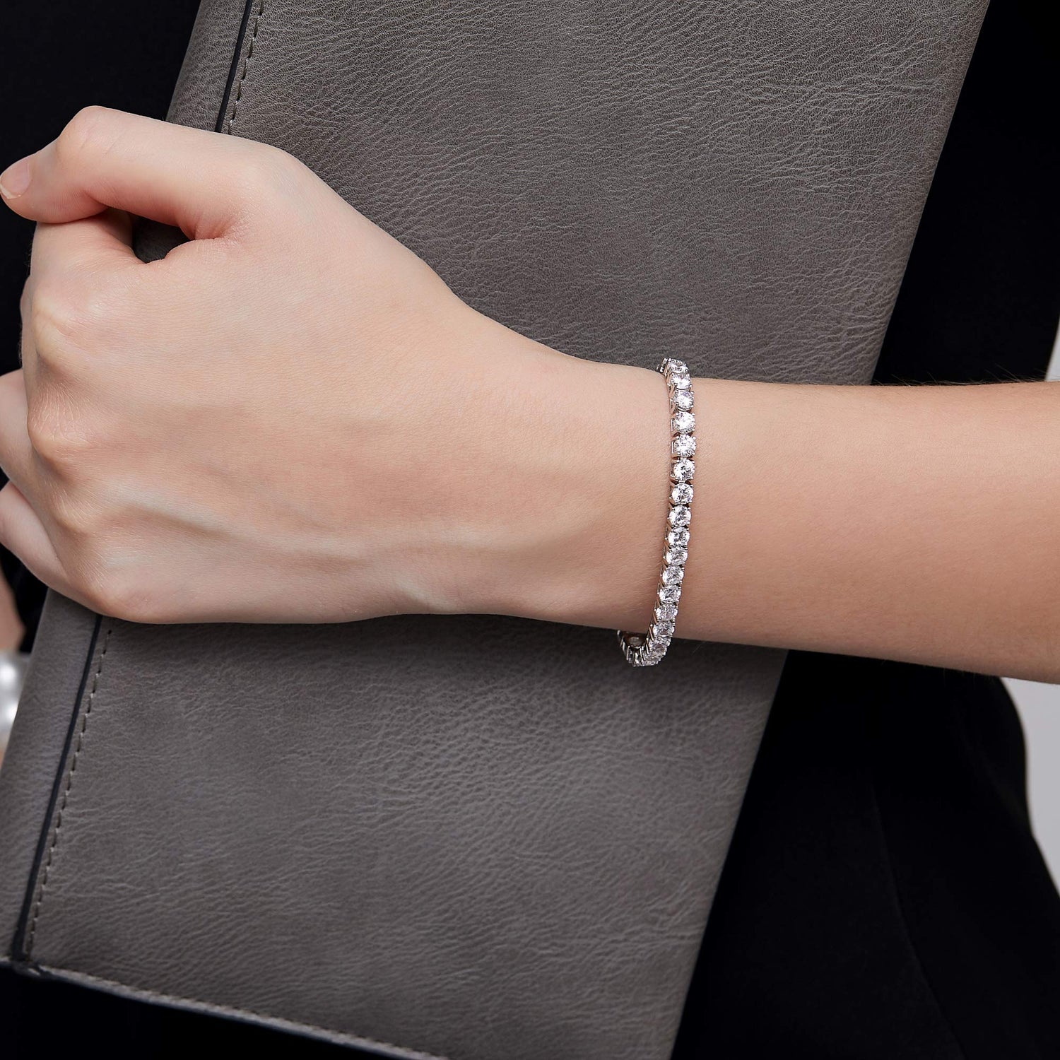 • ❤.【TOP-Qualität】 Weißgold überzogenes 925er Sterling Silber Tennis Armband, Nickelfrei, hypoallergenes Armband Damen Silber.
