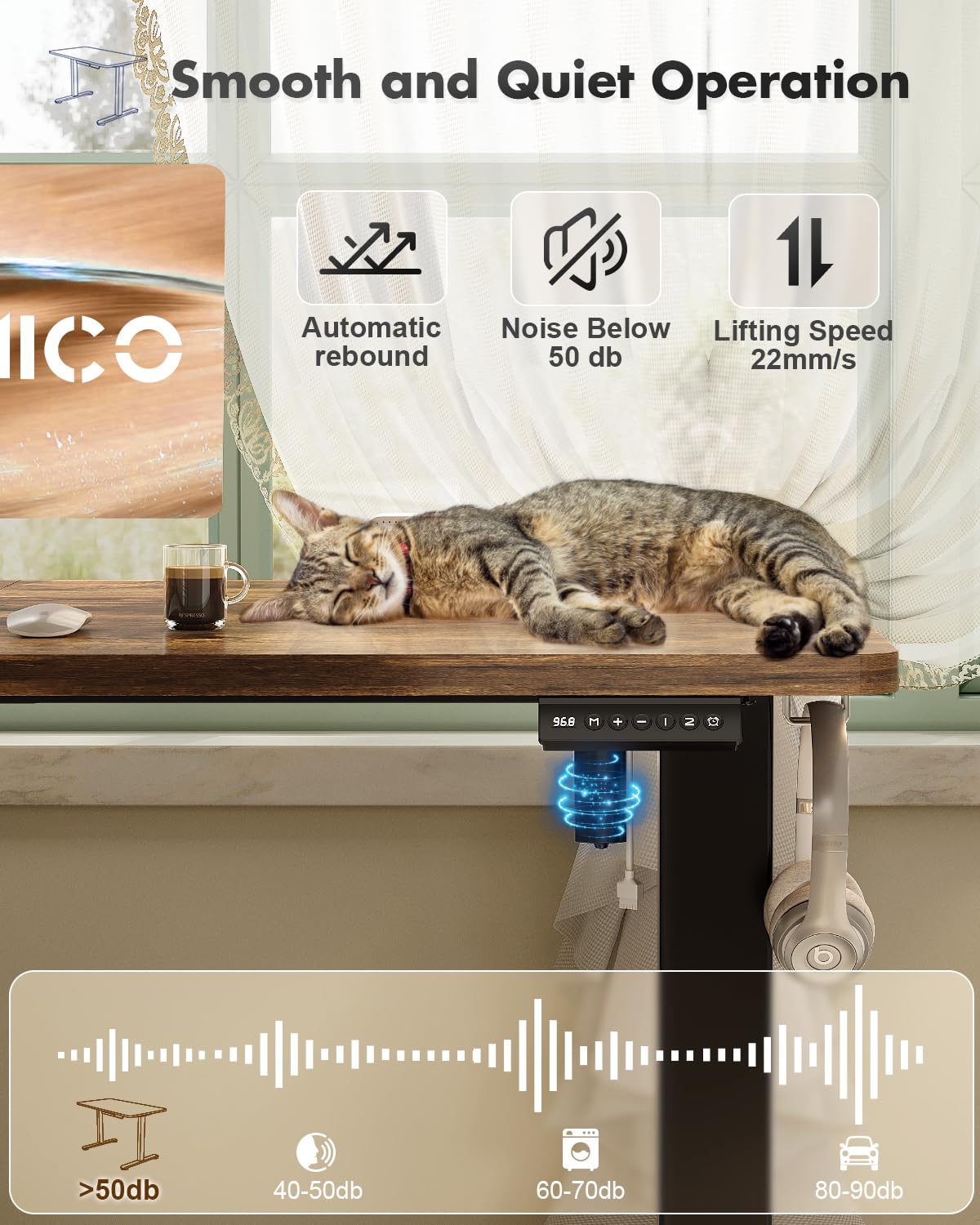 • Elektrische Höhenverstellung: Das JUMMICO-Stehpult lässt sich per Knopfdruck einfach in der Höhe verstellen, so dass Menschen mit unterschiedlicher Körpergröße es in verschiedenen Szenarien nutzen können. Die 1/2 Memory-Taste ist so konzipiert, dass sie sich schnell und präzise auf die voreingestellte Komforthöhe einstellen lässt. Das Motorsystem ist außerdem mit einer Antikollisionsfunktion und einem Überhitzungsschutz ausgestattet.