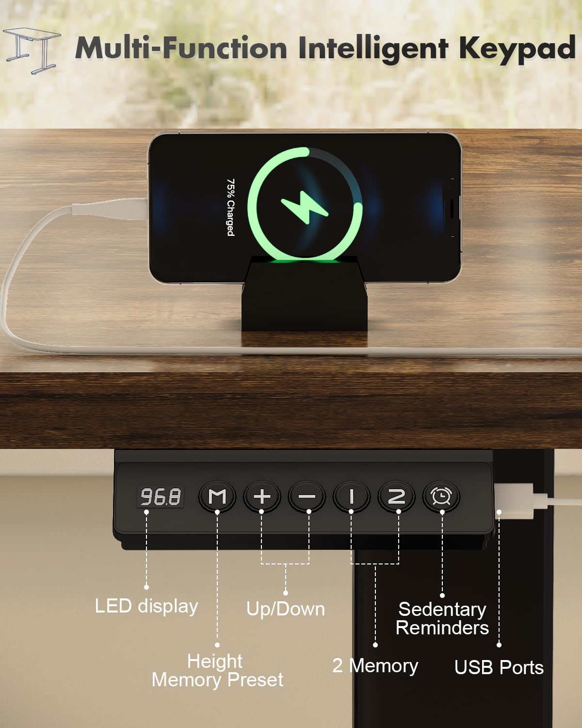 JUMMICO Höhenverstellbarer Schreibtisch Höhenverstellbar Elektrisch, Ergonomischer Steh-Sitz Tisch Stehpult Verstellbarer Computertisch,Stehschreibtisch Bürotisch Standing Desk,100 x 60 cm, Braun