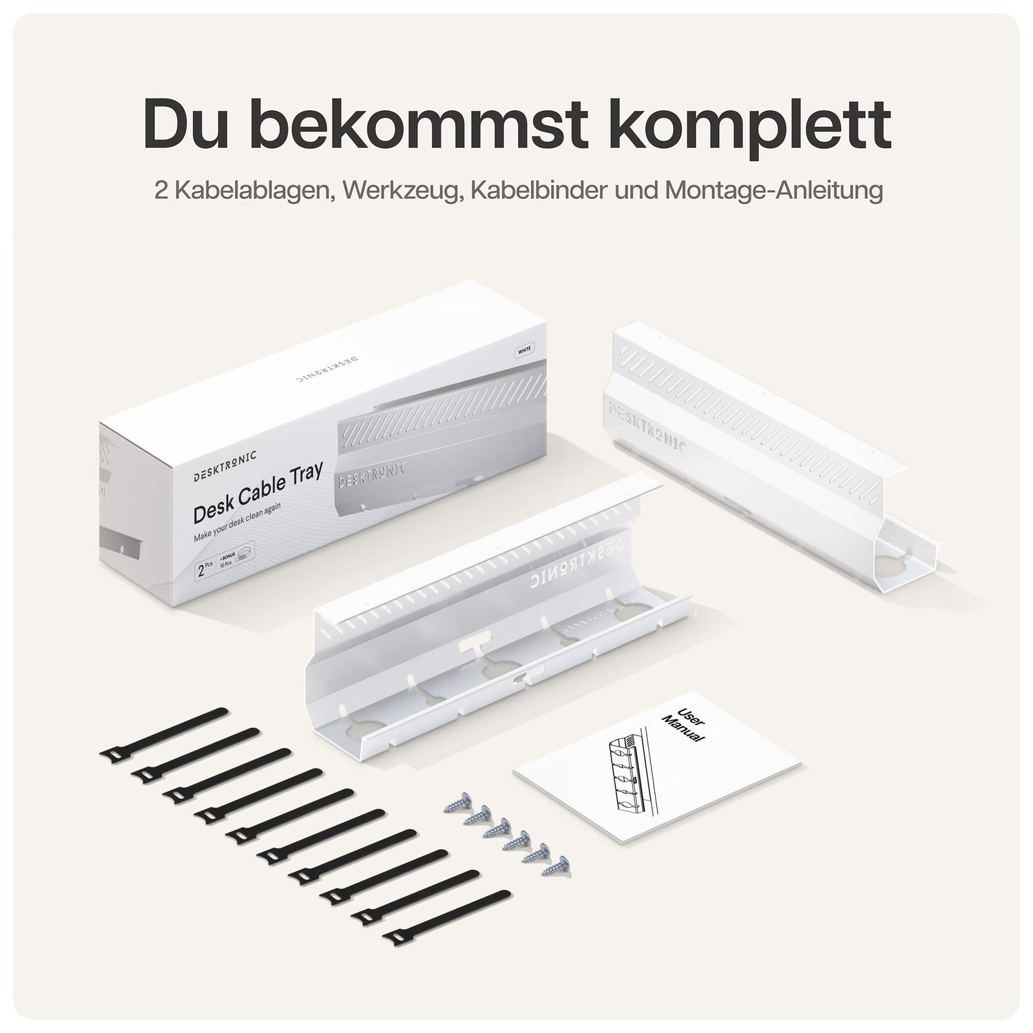 • Unser versprechen an sie: Bei Desktronic stellen wir das qualitativ hochwertigste & leistungsfähigste Kabelmanagement für Schreibtische her. Wir fühlen uns der vollständigen zufriedenheit unserer Kunden verpflichtet. Wenn Sie mit Ihrem Schreibtisch Kabelkanal aus irgendeinem Grund nicht zufrieden sind werden wir eine Lösung finden. Denn Sie verdienen einen optimalen organisierten arbeitsplatz damit Sie sich auf Ihre Arbeit konzentrieren und Ihre beste Leistung bringen können.