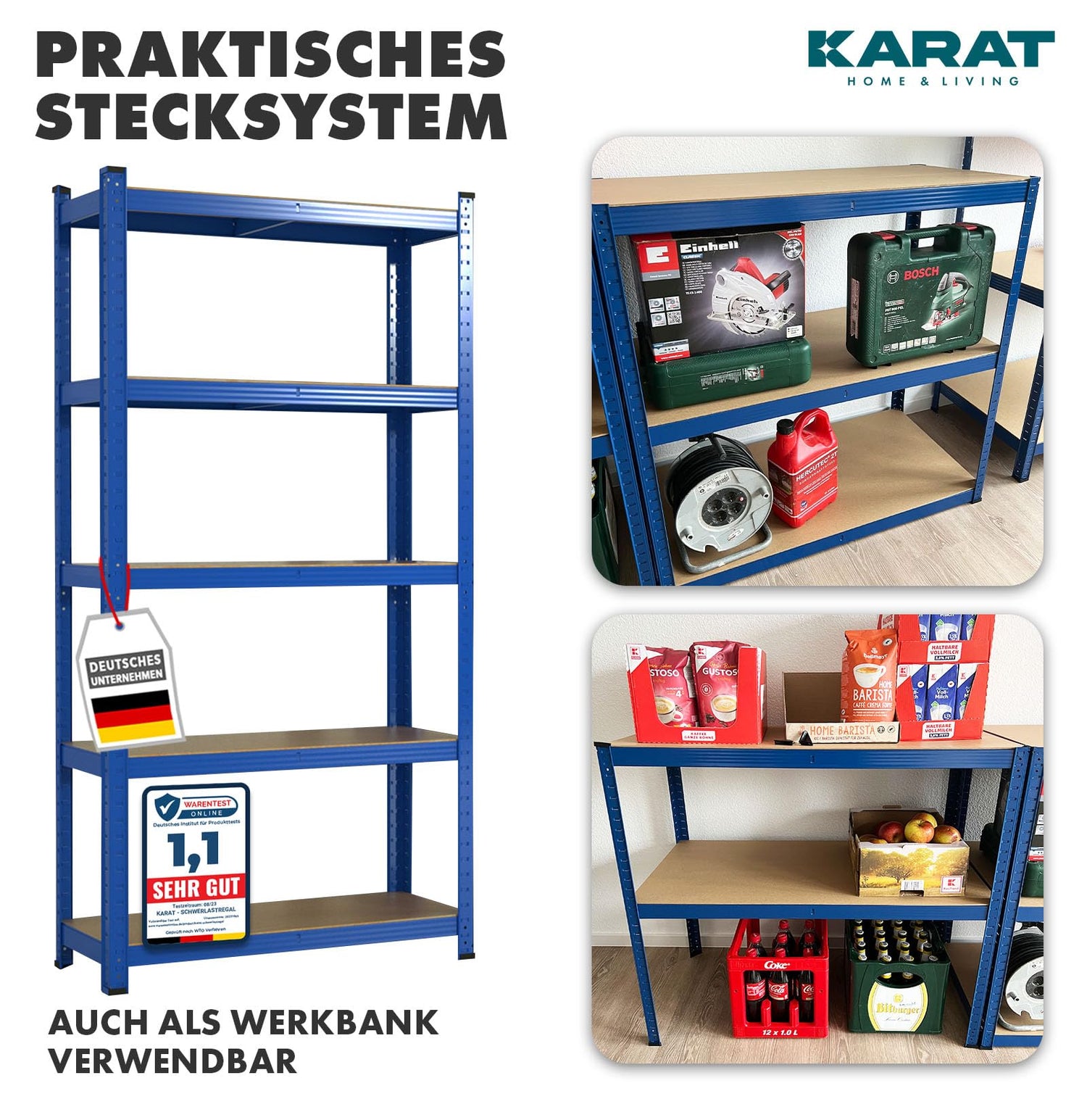 • ✅ GEPRÜFTE SICHERHEIT - Nutzbar ist das fertige Regal dann zum Beispiel als Lagerregal, Kellerregal, Garagenregal oder Vorratsregal. Ihren Ideen sind dabei kaum Grenzen gesetzt!