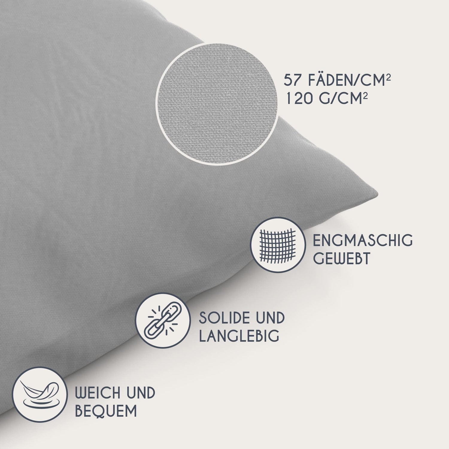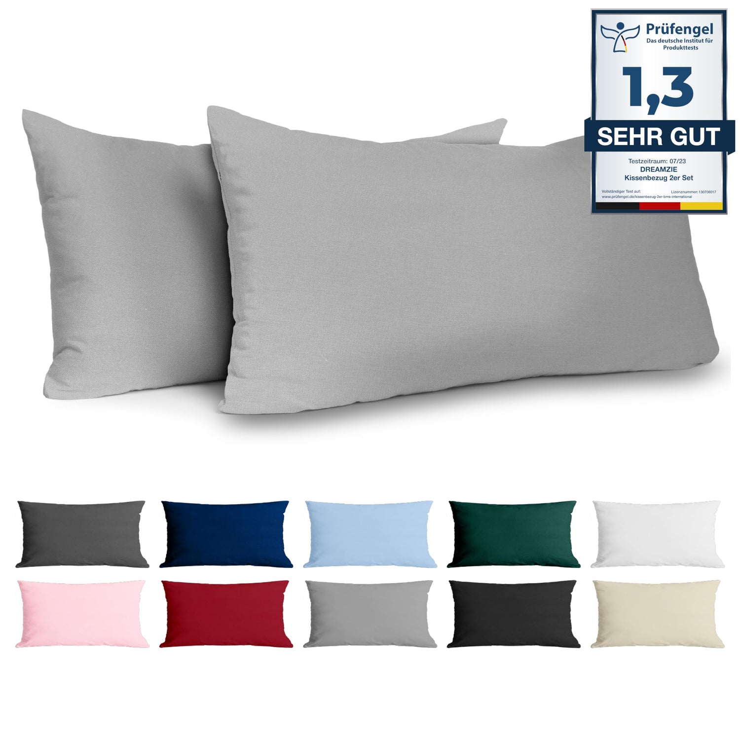 Kissenbezug 40 x 80 Renforcé Baumwolle (2er-Set) - Hellgrau - Dicht gewebt mit 57 Fäden/cm² - Kissenbezug 40x80 cm - Oeko Tex Zertifiziert - Dreamzie