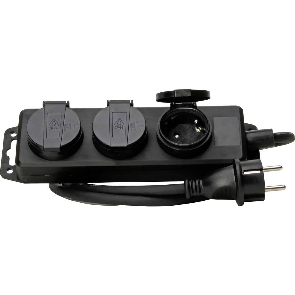 Einzelheiten: Engineered in Germany! Die 3-fach Steckdosenleiste schwarz für Feuchträume sorgt für eine zuverlässige Stromversorgung für diverse Elektrogeräte im Innenbereich und im Außenbereich. Über die 45° gedrehten Schutzkontakt-Steckdosen können diverse Strom-Geräte, die über einen Schutzkontakt-Stecker, Konturenstecker oder Eurostecker verfügen, mit Strom versorgt werden. Der Steckdosen-Abstand zwischen den Steckplätzen erlaubt es, auch breitere Netzteile, Ladekabel, Zeitschaltuhren oder Winkelstecker nebeneinander zu platzieren, ohne benachbarte Steckplätze zu verdecken. Die Steckdosen-Deckel sorgen für erhöhte (Arbeits-)Sicherheit.