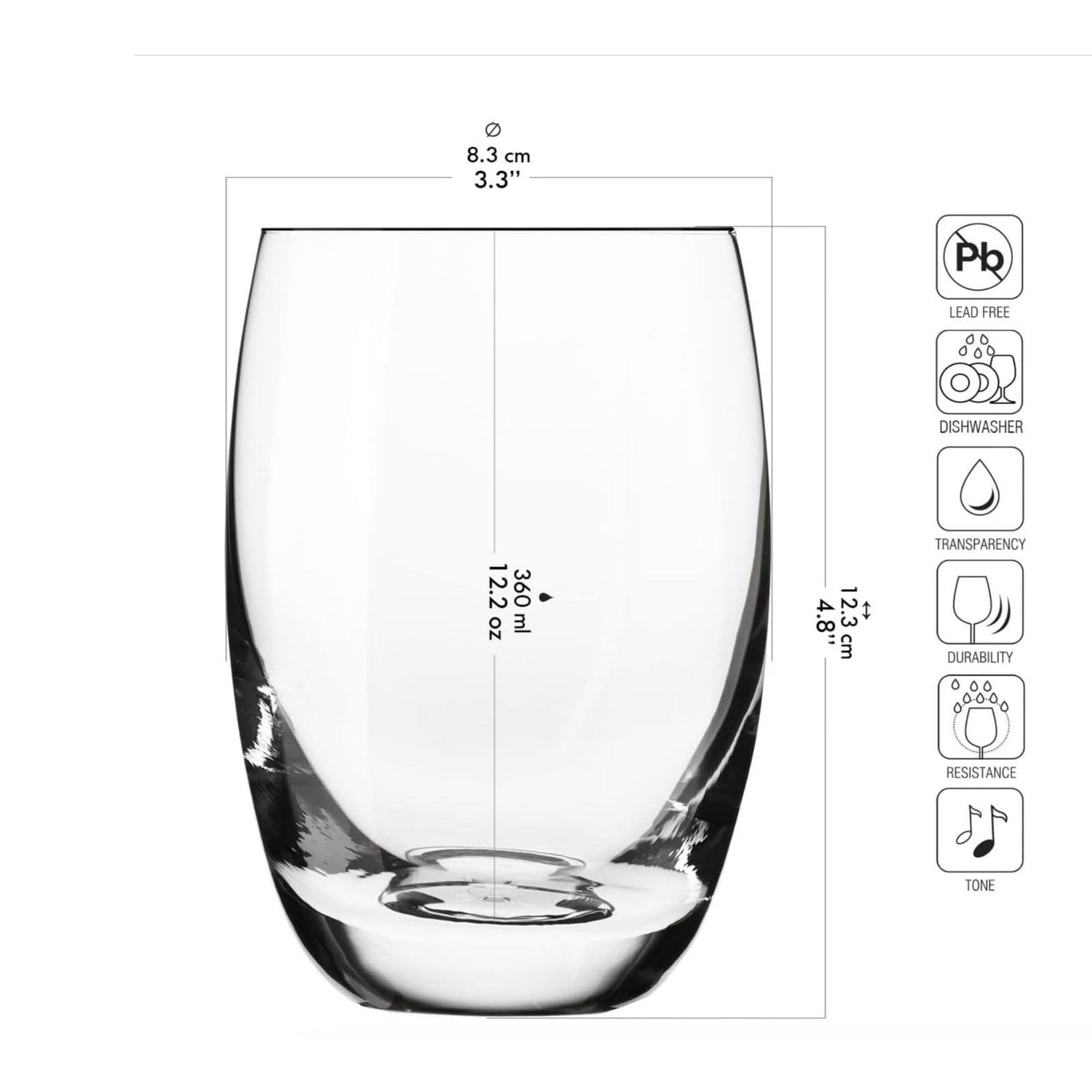 • 360 ML GLASVOLUMEN - Das transparente Glas hat eine Höhe von 123 mm und einen Durchmesser von 83 mm. Schlanke Form mit stabilem Boden und glattem Rand wird Liebhaber von geschmackvollem Minimalismus ansprechen.
