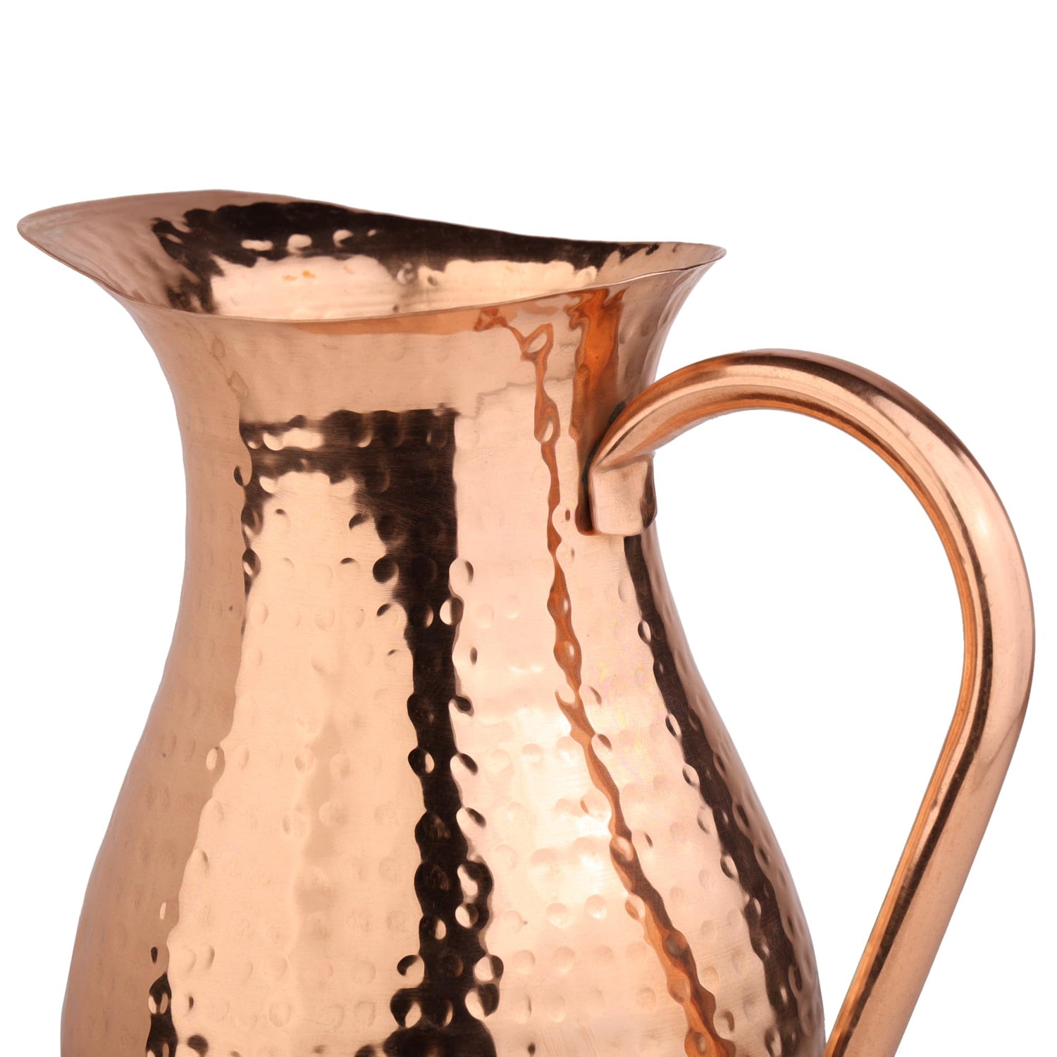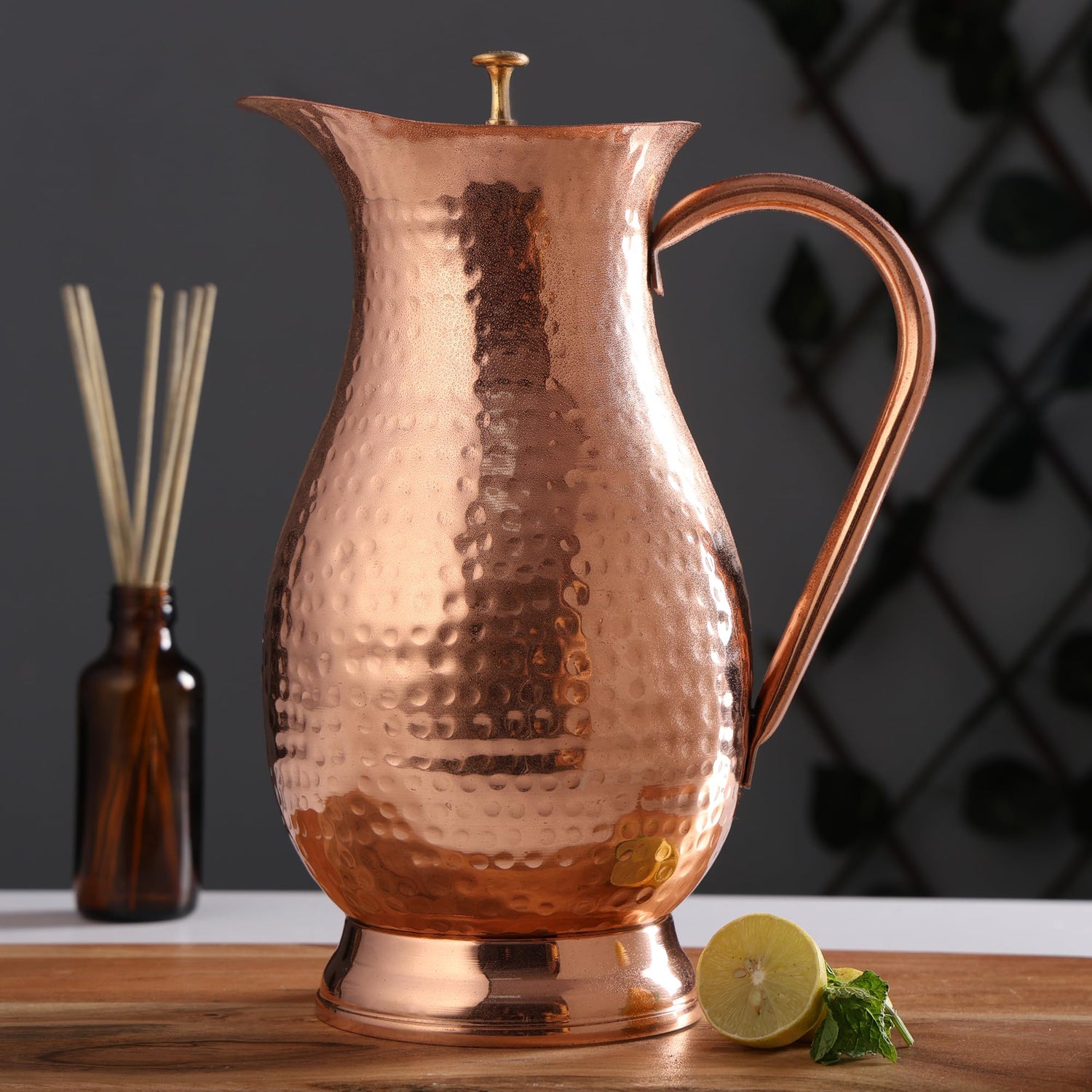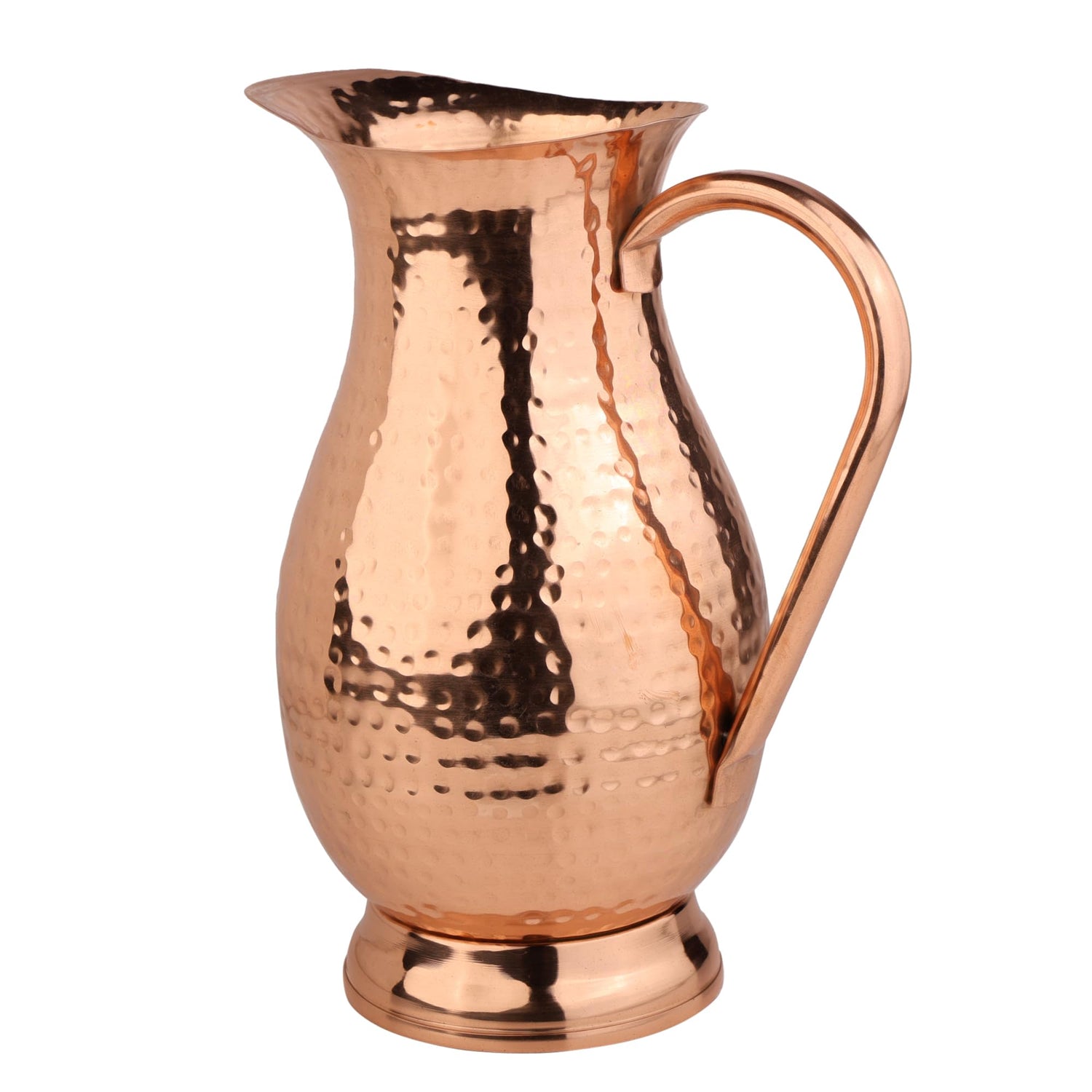 • Der Kupferkrug strahlt ein gewisses altes und weitgereistes Flair aus. Füllen Sie Ihre Karaffe und lassen Sie sie über Nacht stehen, damit das Kupfer Ihr Wasser sanft und auf natürliche Weise reinigt und Ihr Wasser mit Spuren von Kupfermineralien positiv auflädt. Der Kupferkrug wird zweifellos für Gesprächsstoff in Ihrem Zuhause sorgen.