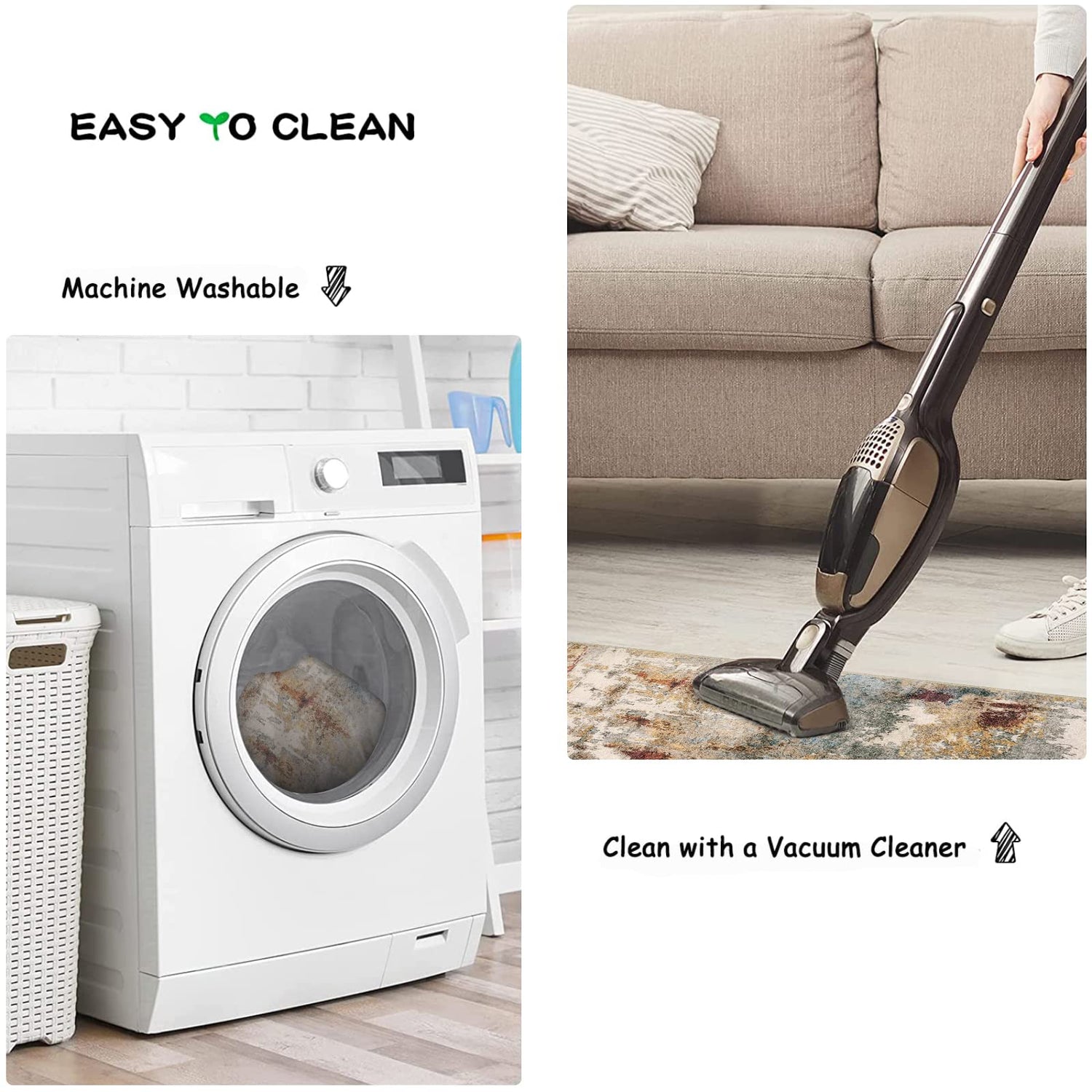 • Maschinenwaschbarer Teppich: Bietet endlosen Komfort für jeden Lebensstil. Unsere Matten sind sicher in der Waschmaschine. Auch für die tägliche Reinigung mit Staubsauger, Besen oder Wischtuch. Für ein neues Aussehen.