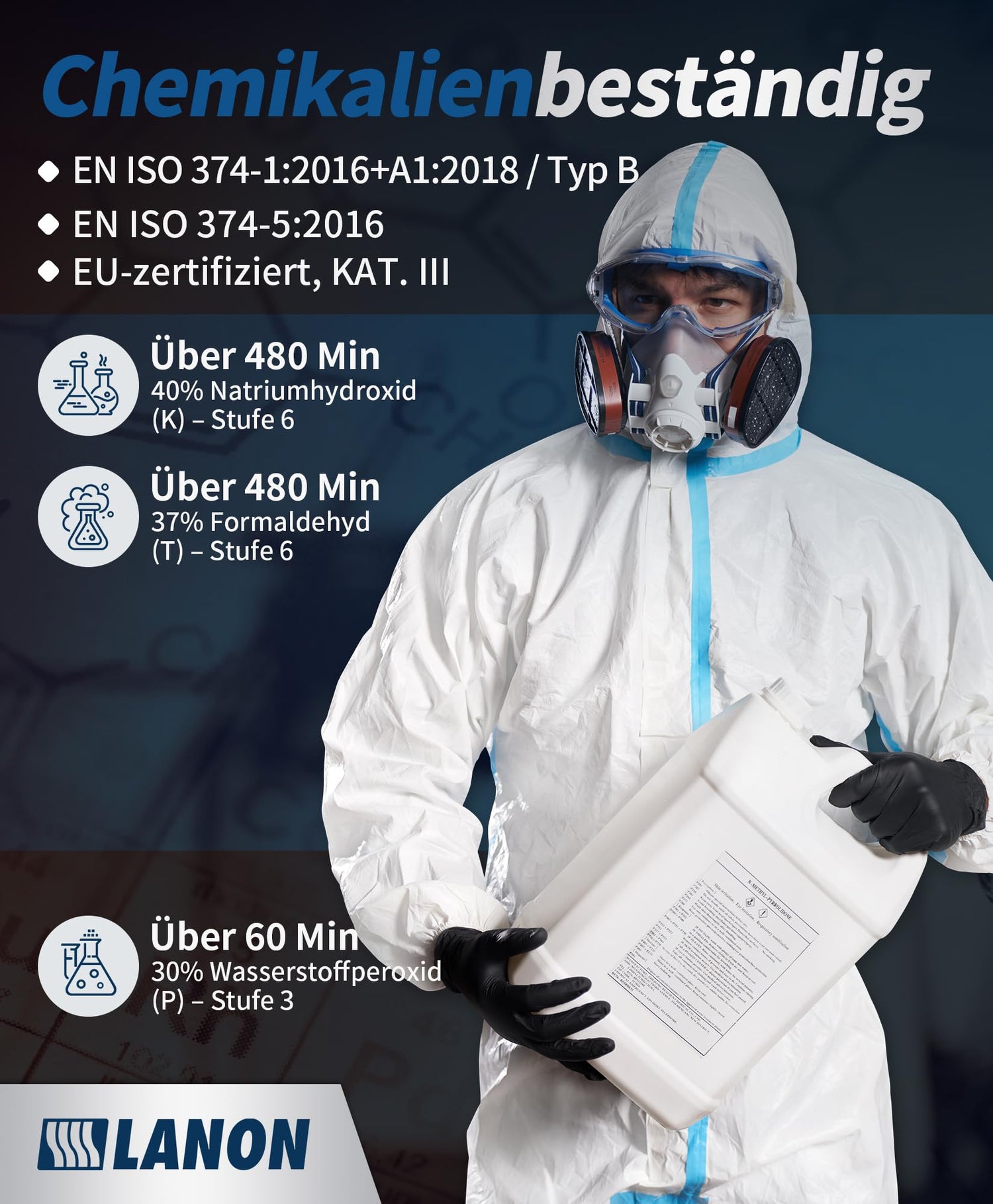 • Next-level Performance - LANON einweghandschuhe zum handschutz erfüllen die anforderungen der F.D.A. 21 C.F.R, sind für den kontakt mit allen Lebensmittelarten Geeignet, EU-zertifiziert, CAT III, mit den Standards EN ISO 374-1:2016+A1:2018/Typ B , EN 374-4:2013, EN ISO 374-5:2016 und haben einen AQL von 4,0.