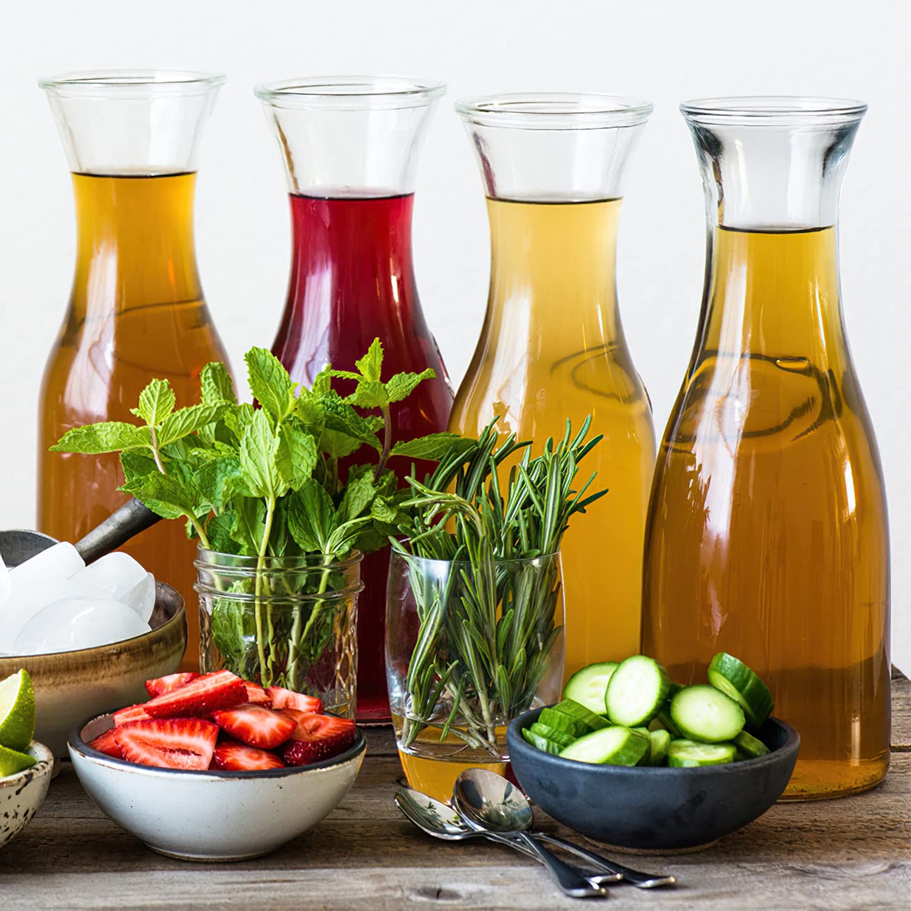 Lawei 4 Stück Wasserkaraffe Glas Wasserkrug 1Liter Wasserflasche Saftkaraffe Glas Glaskaraffen mit Deckel für Wasser Entsaft Eistee Getränke Wein