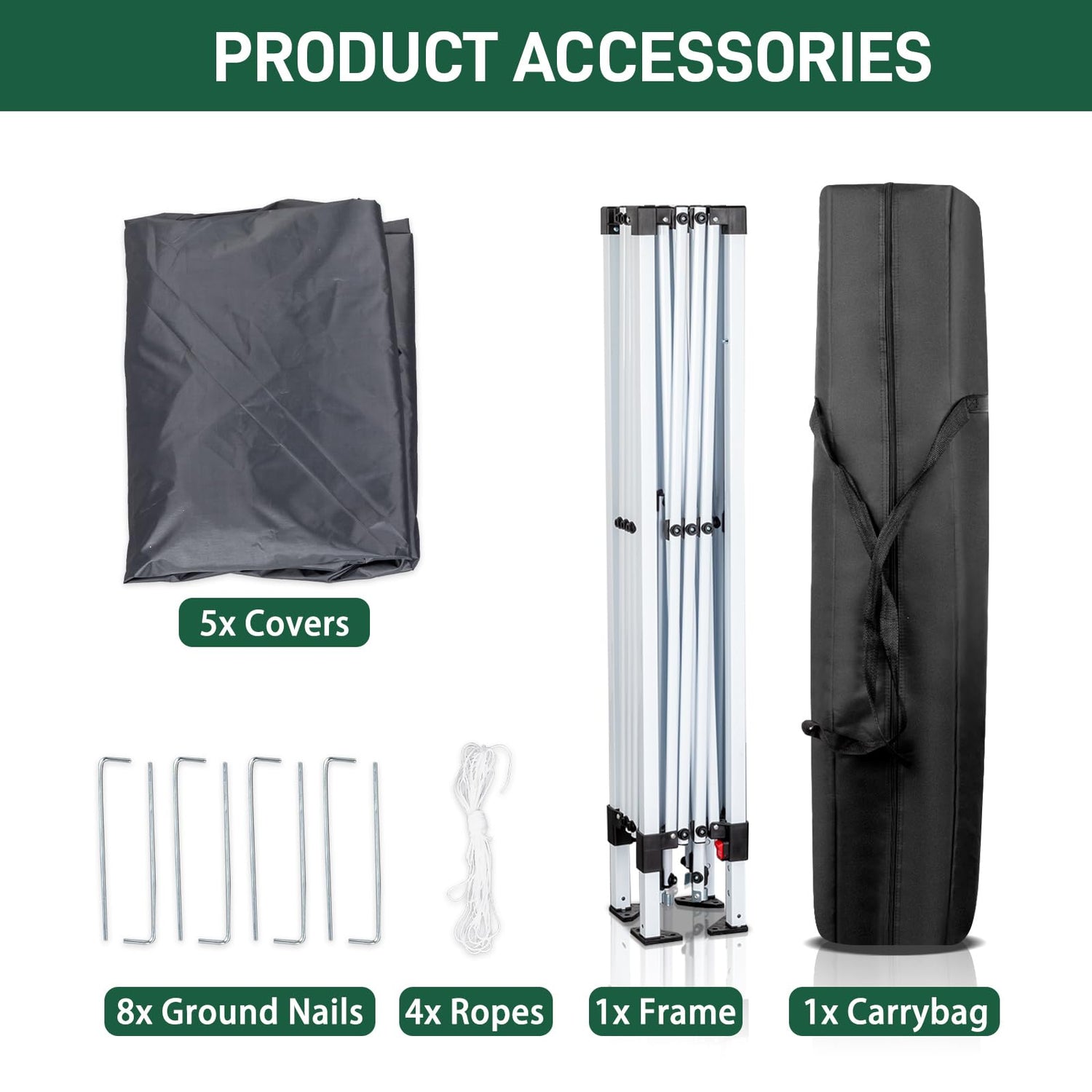 • 【Strukturelle Stabilität】: Hergestellt aus gehärtetem Stahl mit Bodenspikes und Seilen, ist dieser Pavillon in der Lage, hohe Festigkeit und Stabilität in den meisten Gelegenheiten zu erhalten