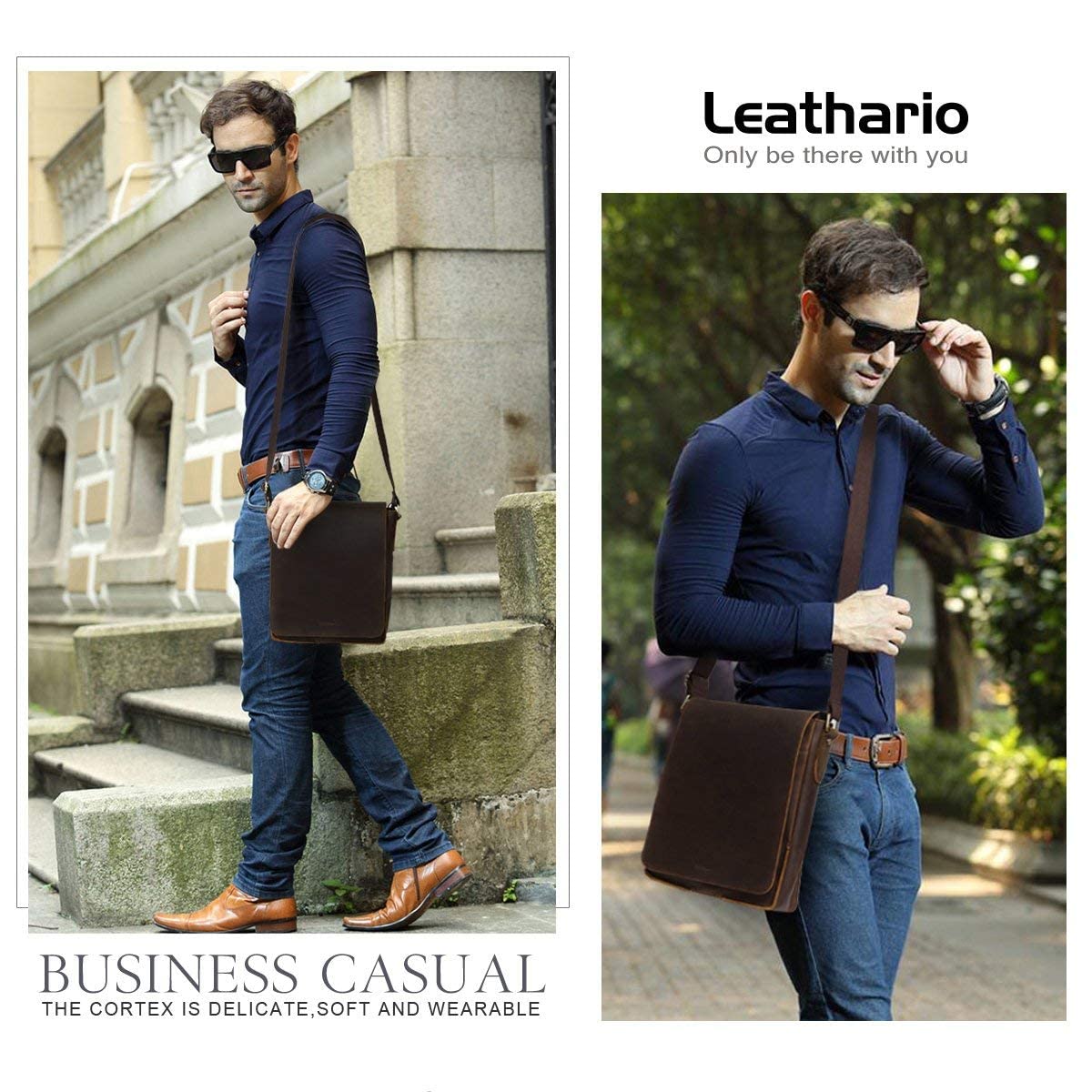 Leathario Herren Umhängetasche Schultertasche Leder 9.7Zoll Ipad mit 5 Steckfächern 25 x 7 x 31 cm für Alltage Freizeit