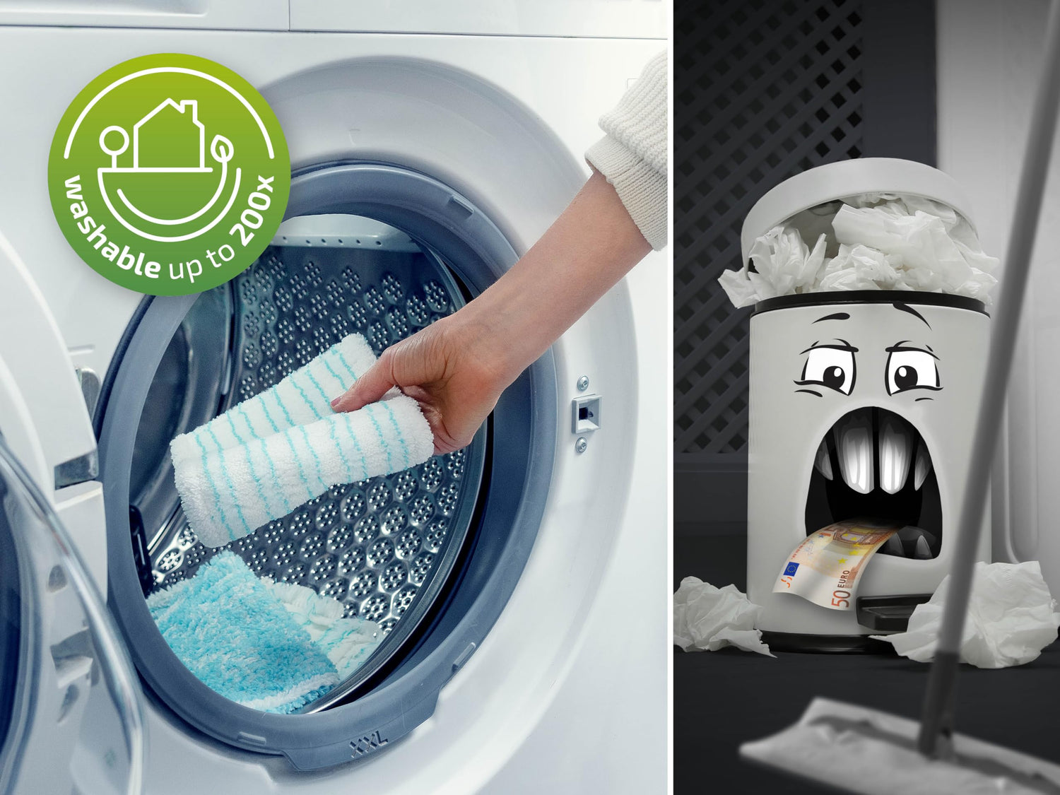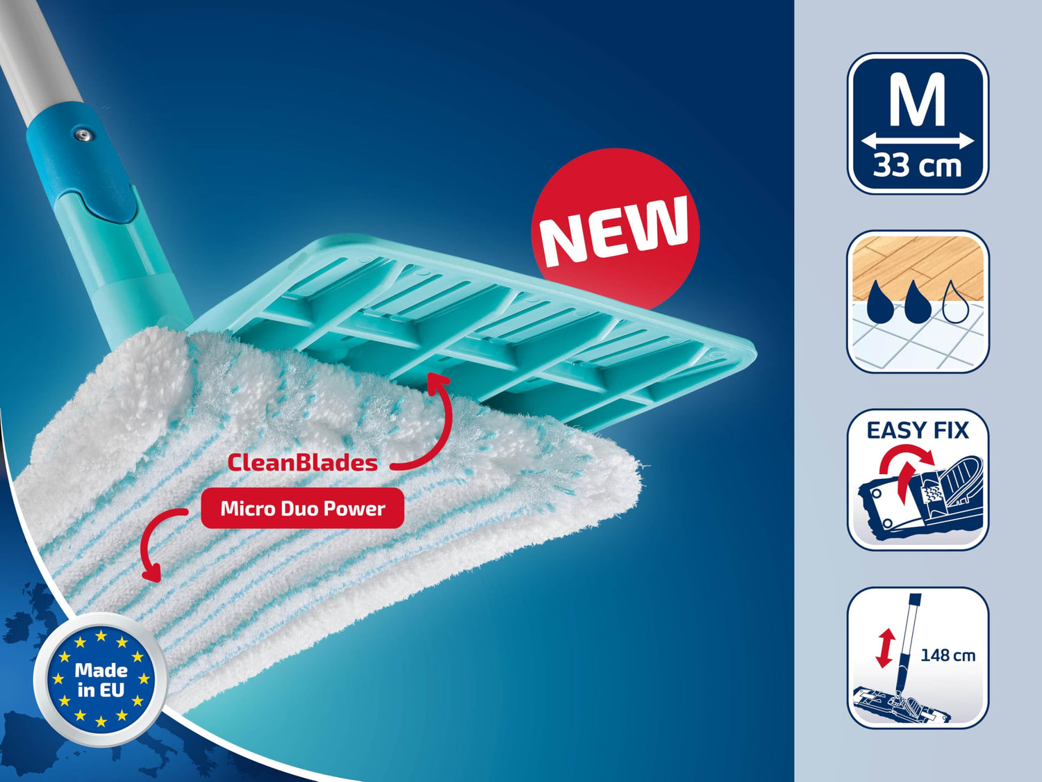 • Effektive Reinigungsklingen - Die innovativen Reinigungsklingen lösen hartnäckigen Schmutz. Der 2-Faser Mikrofaser Wischbezug nimmt den Schmutz selbst an unebenen Stellen wie Ecken und Kanten auf.