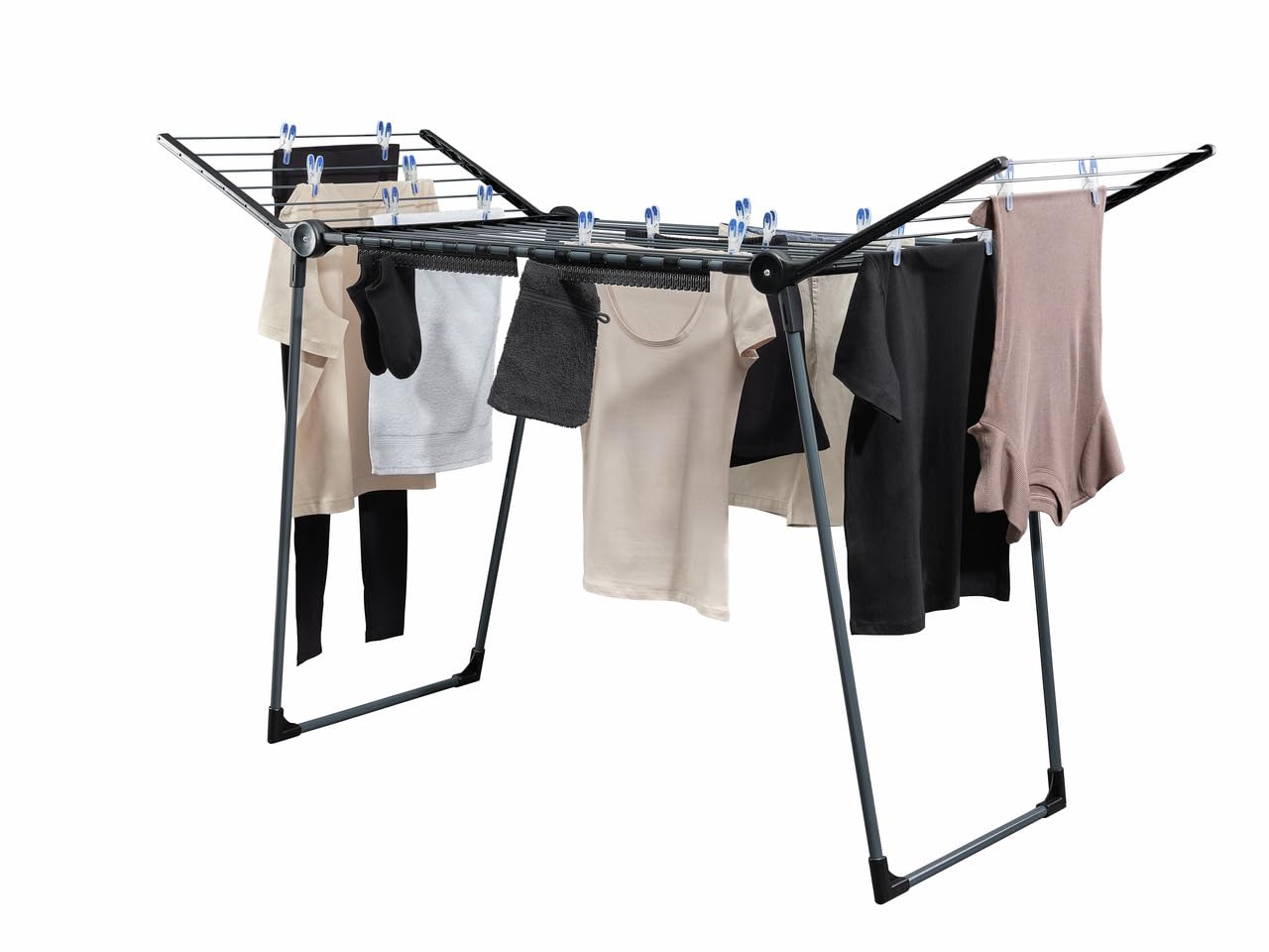 • Mit Flügeln - Durch die 1,05 Meter hohen Flügel ist dieses flach verstaubare Wäschegestell ideal zum Trocknen langer Wäschestücke, wie z. B. Hosen oder Badehandtücher