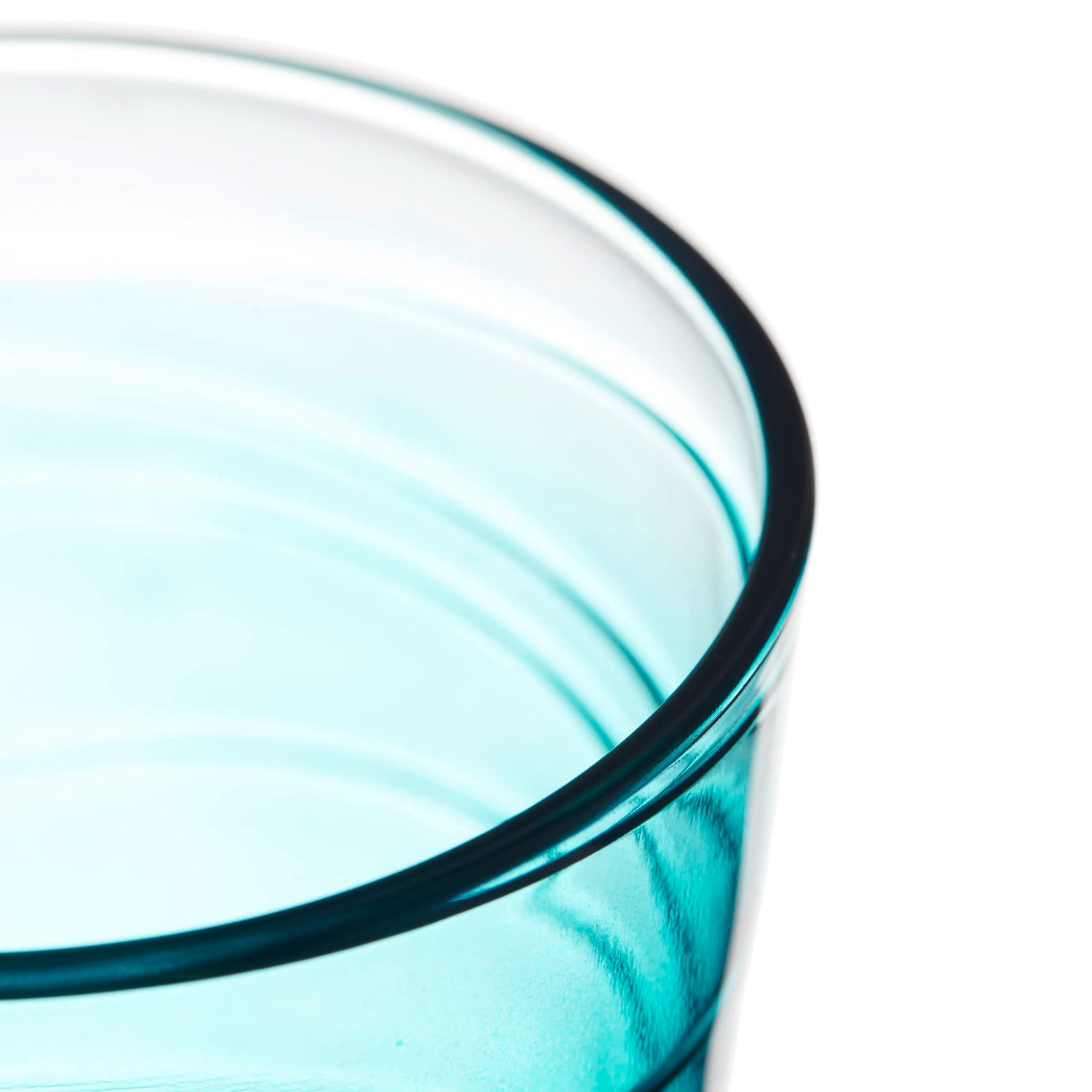 • Lieferumfang & Maße: 6 Getränke-Gläser, Farben: gemischt, blau türkis rot grün orange lila, Glas-Maße: 12,5 x 7,5 x 7,5 cm (HxBxT), Ø 7,5 cm, 330 g, 200 ml Nutzinhalt, 280 ml randvoll