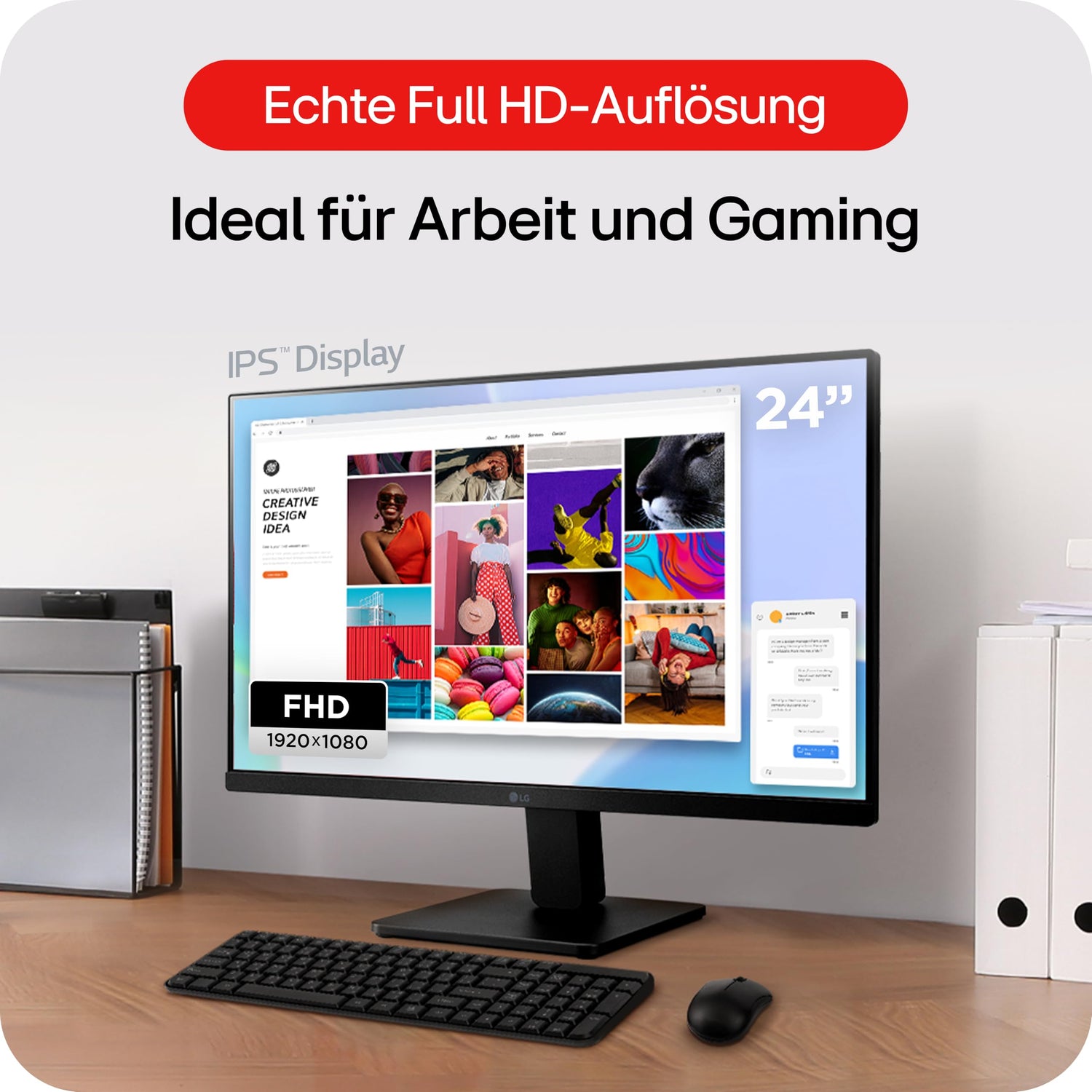 • 60,4 cm (24") IPS-Monitor in nahezu rahmenlosem, schlanken Design / Full-HD-Auflösung (1.920 x 1.080 Pixel)