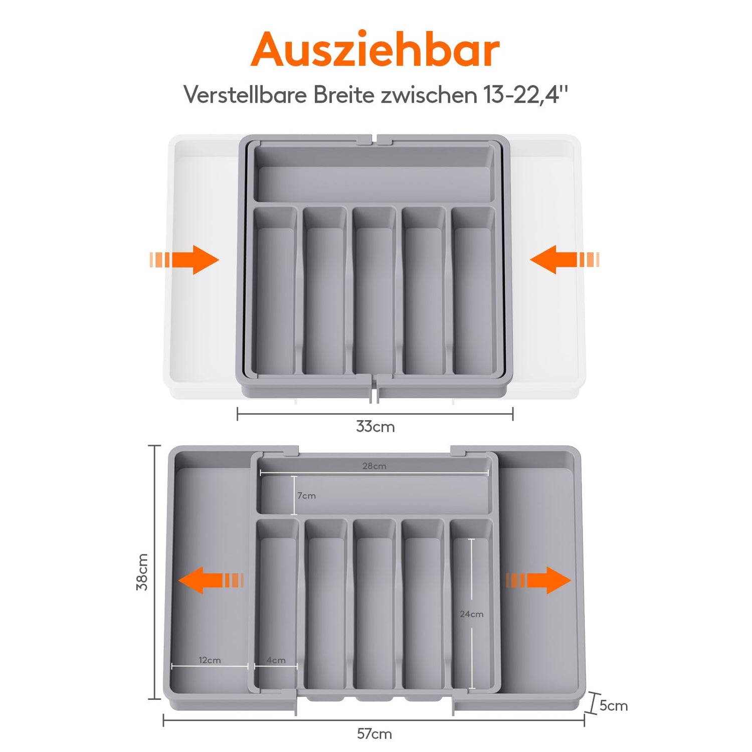 Lifewit Besteckkasten für Schubladen,erweiterbarer Besteckhalter Utensilienhalter für Küchenschubladen, kompakt Besteckeinsatz für Küche Organizer aus Kunststoff für Löffel,Gabeln, Messer, Grau
