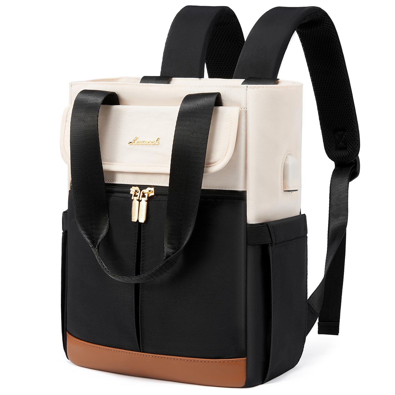 LOVEVOOK Rucksack Damen Klein, Kleiner Rucksäcke Damen Cityrucksack Mini Rucksacktasche Elegant Handtasche Schultertasche, Wasserdicht Laptop Tagesrucksack 13,3 Zoll, Beige Schwarz Braun