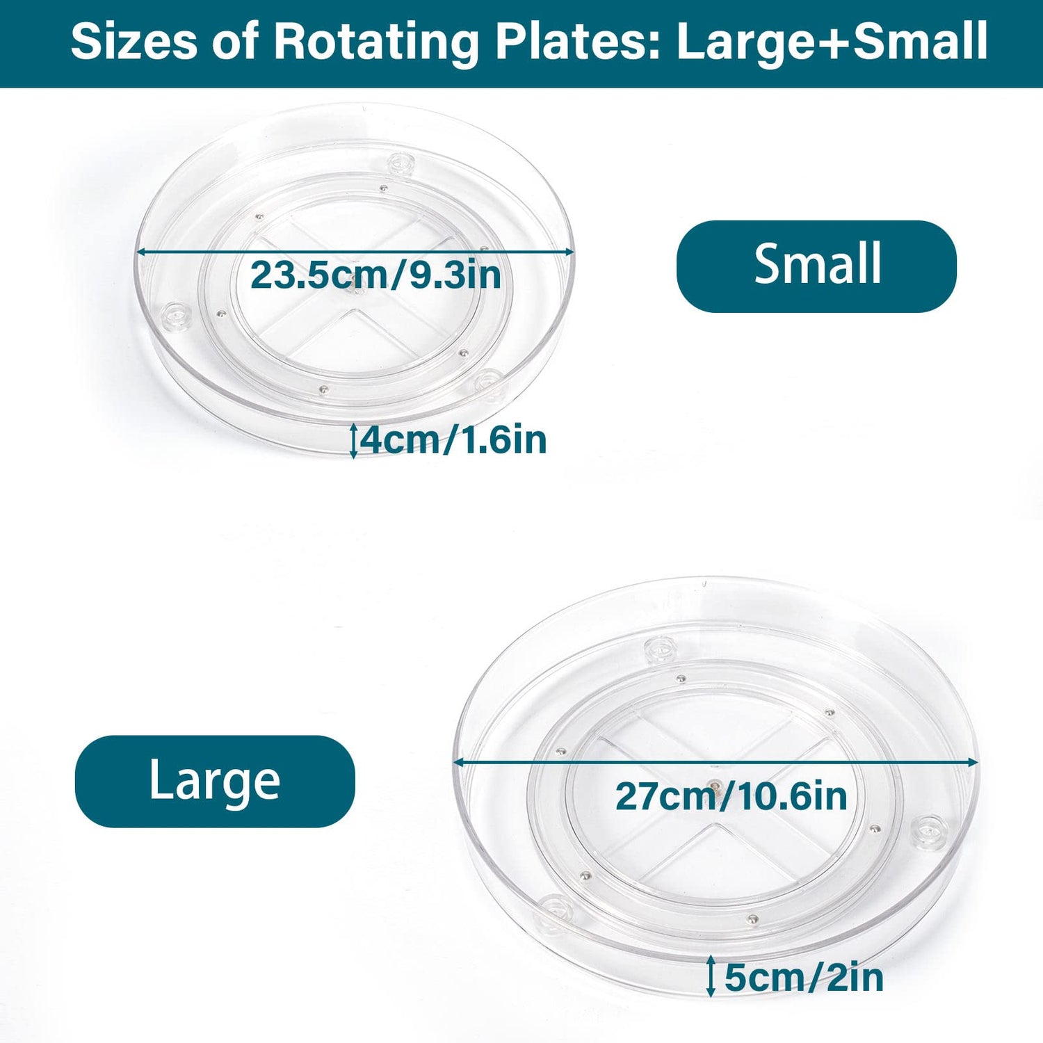 LUZOON Kühlschrank Organizer 2 Stück:27+23cm, Schrank Organizer Küchen Lazy Susan 360° Drehbarer Gewürzhalter – Transparent (Transparent, 2PCS:27cm+23.5cm)