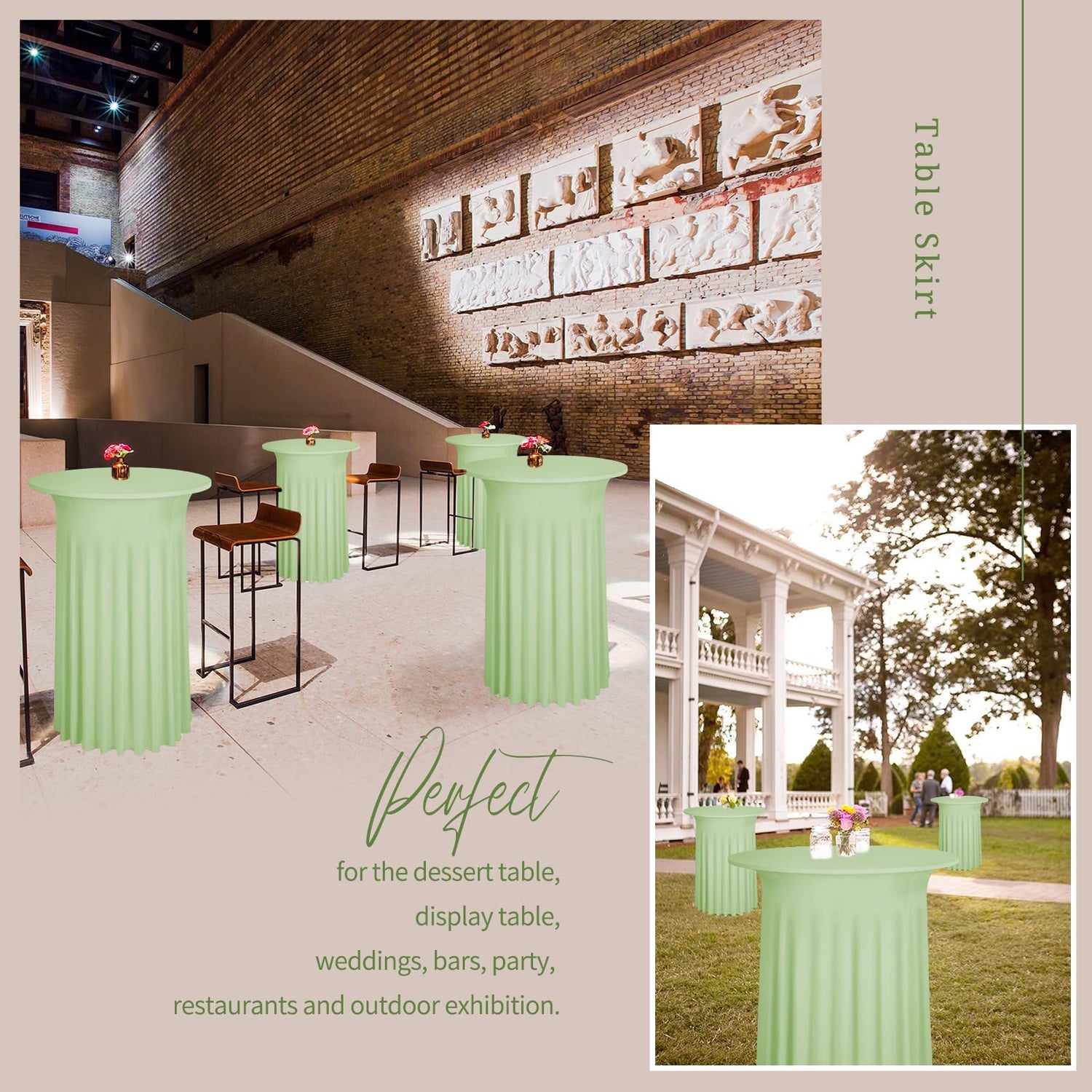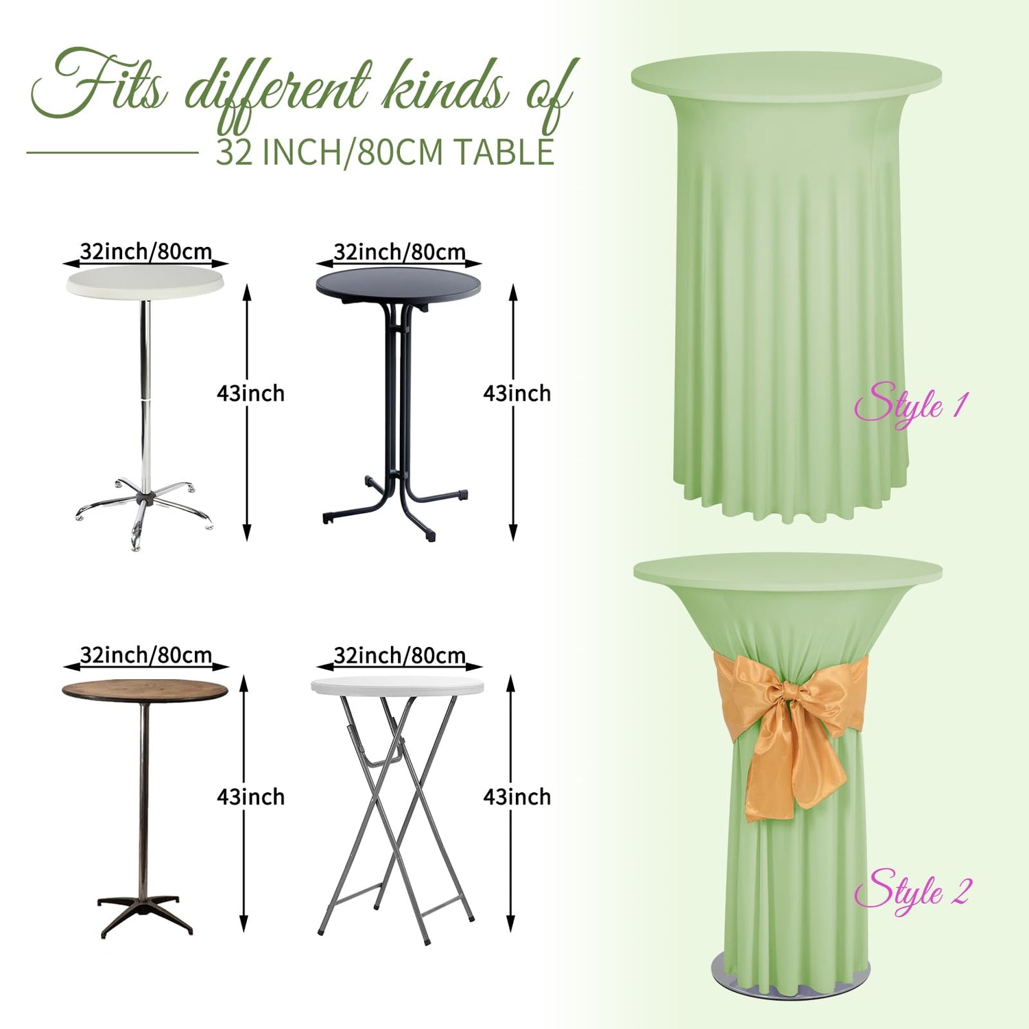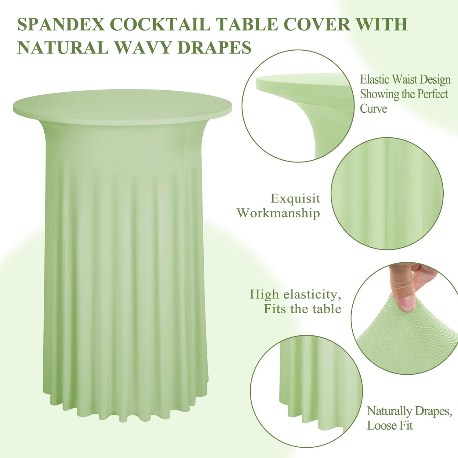 • 【Spandex-Stoff】Ein Set besteht aus 2 Salbeigrün, runden Cocktail-Tischröcken aus Spandex. Diese Spandex-Tischdecke besteht aus hochwertigem, dehnbarem Spandex-Stoff (90 % Polyester und 10 % Spandex). Der Stoff ist knitter- und schmutzabweisend, lässt sich in alle Richtungen dehnen und fusselt nicht. Die elastische Spandex-Tischdecke ist dick und undurchsichtig, die Tischbeine sind schwer zu erkennen und die Abschirmwirkung ist bei wiederholter Verwendung gut.