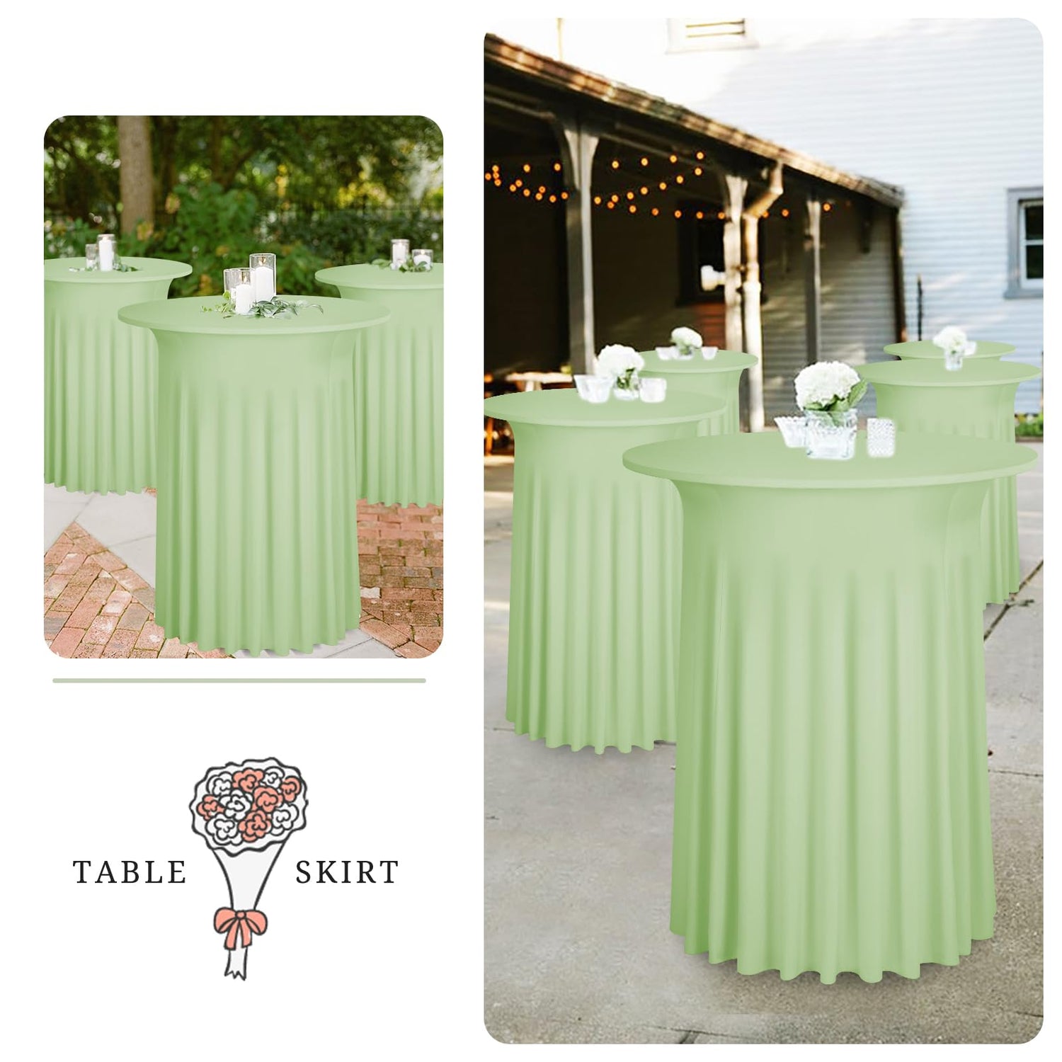 LYAFS 2er-Set Salbeigrün Stehtisch Hussen Stretch Stehtisch Tischdecke mit Rock, 80x110cm Runder Cocktail-Tischrock, Bistrotisch-Bartisch-Abdeckung für Bar, Party, Hochzeit, Banketttisch,Geburtstag