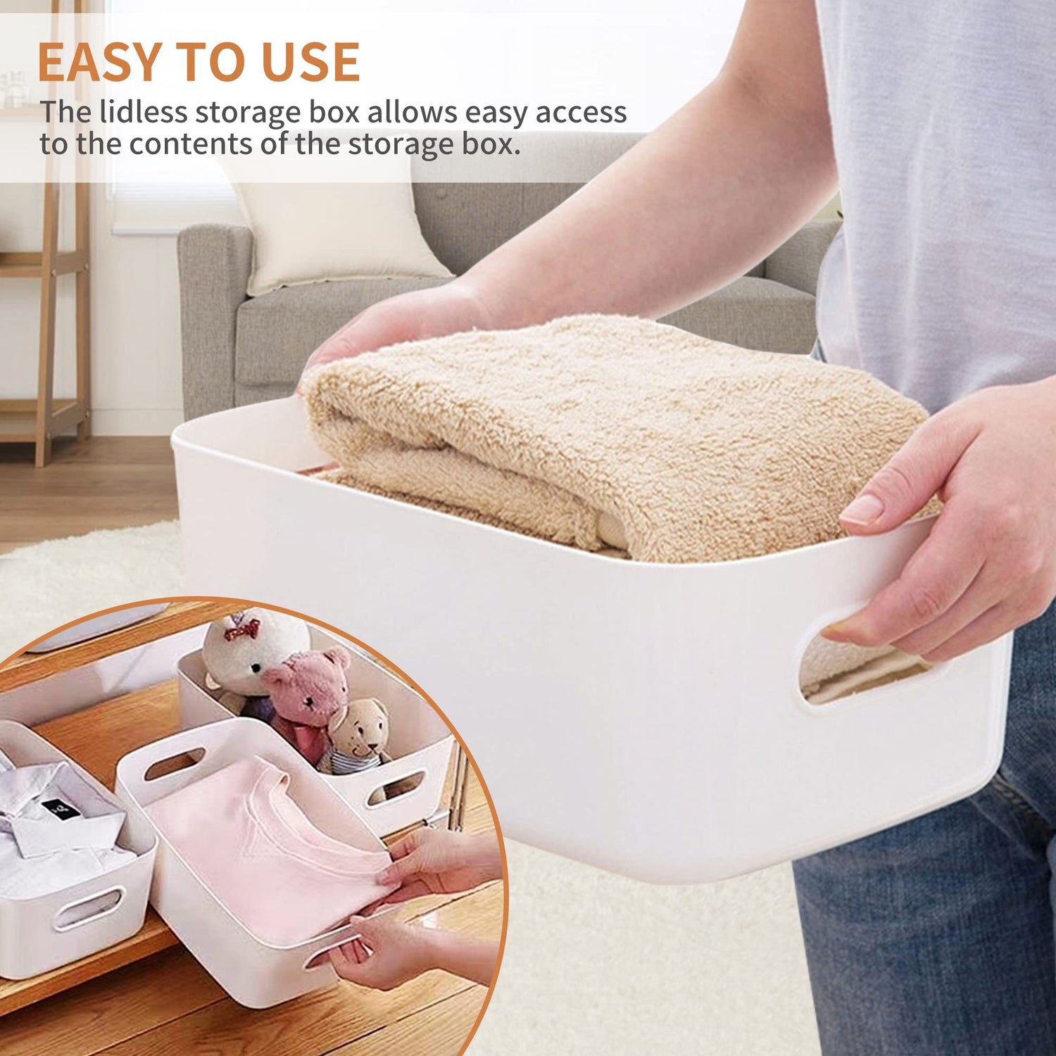LYLIDIA 10 Stück Aufbewahrungsbox Kunststoff Aufbewahrungskorb mit Griffen Küchenschrank Organizer Box Körbe Aufbewahrung Kunststoffbox für Badezimmer Regal Kunststoffbox (Weiß)