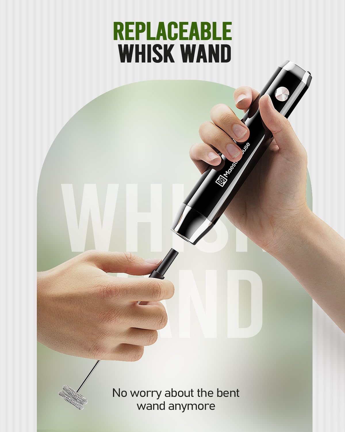 MaestriHouse wiederaufladbarer Milchaufschäumer, tragbar, elektrisch, wasserdicht, abnehmbarer Edelstahl-Schneebesen, Getränkemixer, Ständer, 2 Schneebesen