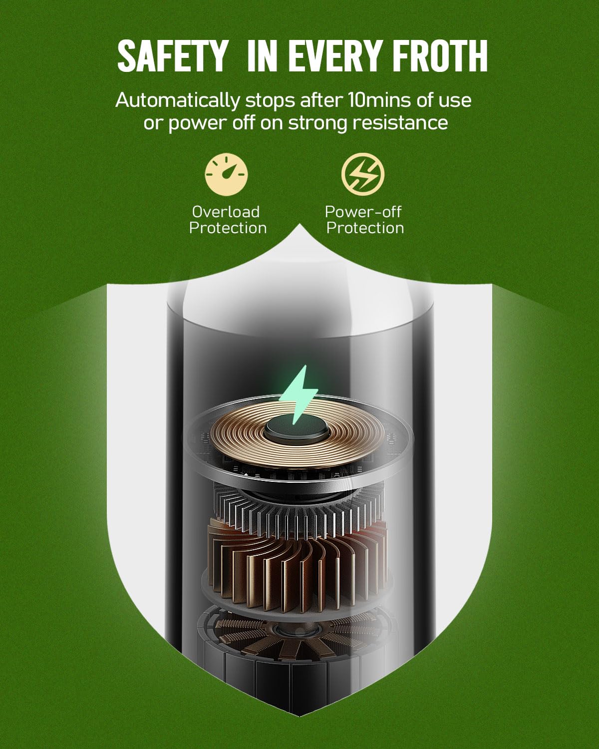 • Machen Sie in Sekundenschnelle eine reichhaltige, cremige Zubereitung: Dieser geniale Getränkemixer ist leistungsstark und verfügt über einen leistungsstarken Turbomotor (8000 ± 10 % U/min), sodass er in 15 Sekunden eine glatte und cremige Zubereitung erhalten kann. Wenn Sie ein Liebhaber von Morgenkaffee sind, ist die Verwendung dieses feinen Schaumbereiters der schnellste Weg, um an einem geschäftigen Morgen samtweichen Milchschaum auf den Kaffee zu bekommen. Stilvoll und vielseitig: Dieser elektrische Milchaufschäumer ist kompakt und stilvoll