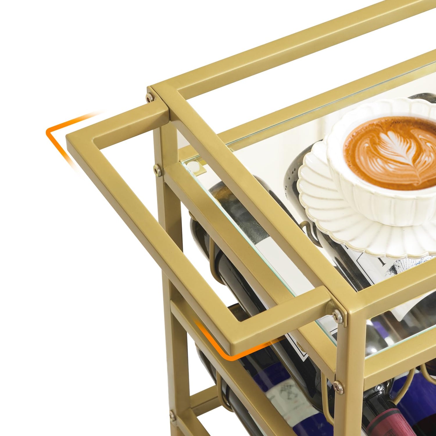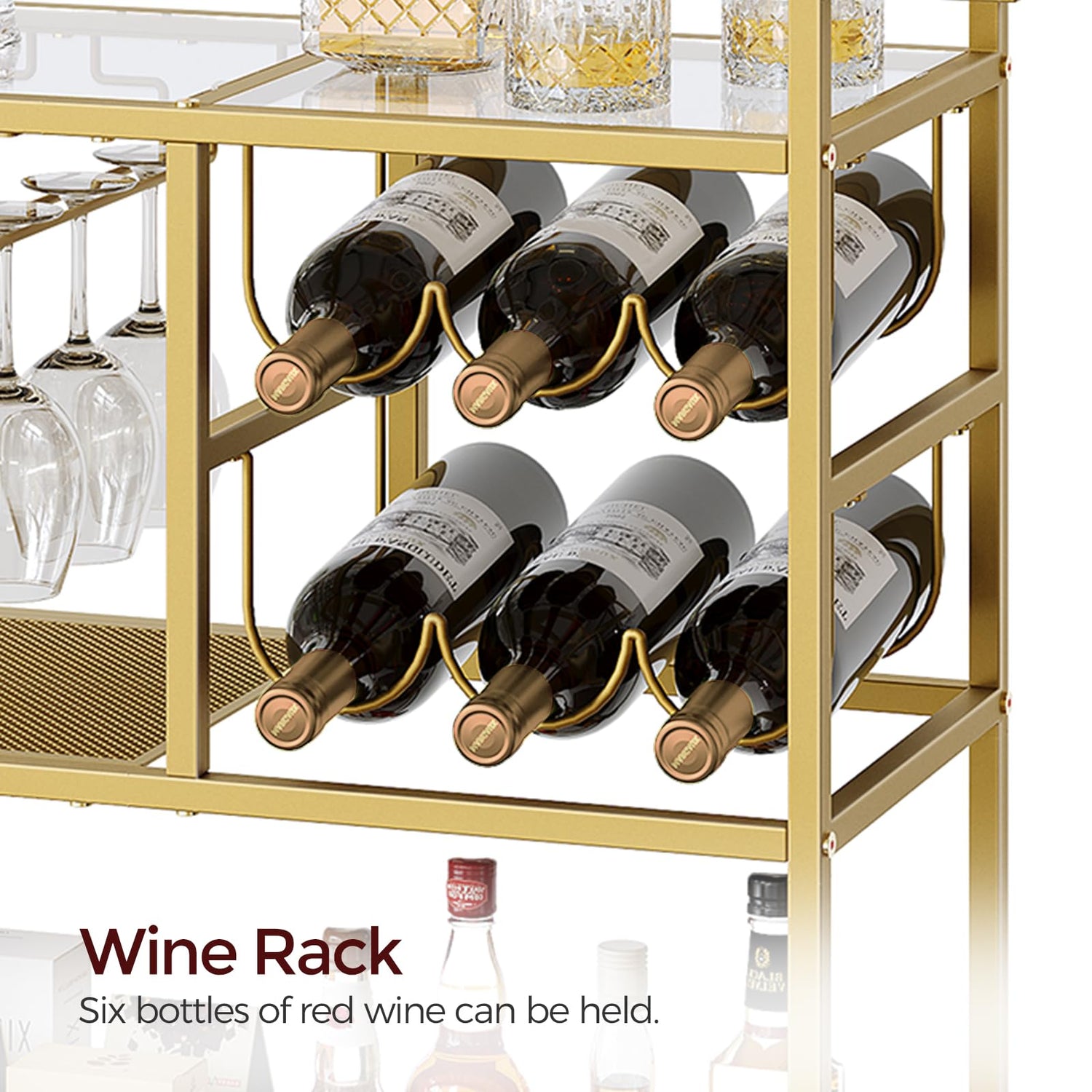 MAHANCRIS Servierwagen mit Rollen, Barwagen mit 3 Etagen und Griff, Küchenwagen, Getränkewagen mit Glas- und Flaschenhaltern, Weinwagen für Küche, Bar, Esszimmer, Gold ARCJ61B01