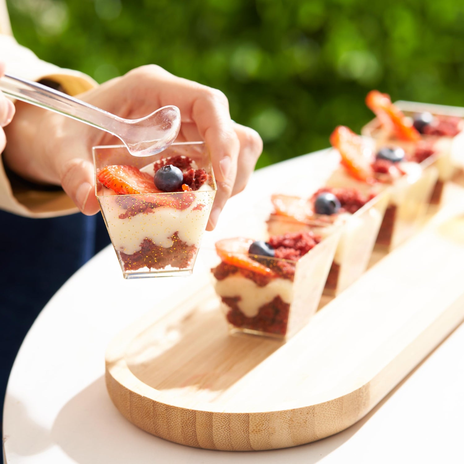 • VIELSEITIGE EINZELPORTIONEN: Diese 60-ml-Becher eignen sich perfekt zum Servieren einer breiten Palette von Desserts, einschließlich Parfaits, Käsekuchen, Mousse, Panna Cotta, Tiramisu, Trifles, Eiscremes, Puddings und Gelees und sorgen so für ein köstliches Erlebnis für Ihre Gäste