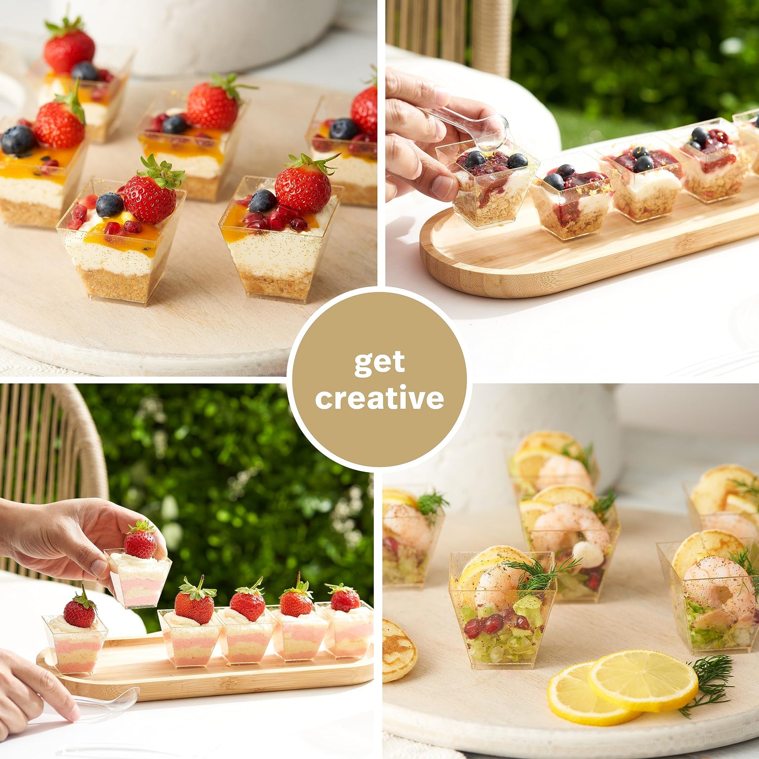 • ELEGANTE PRÄSENTATION: Heben Sie Ihre Dessertpräsentation mit unseren 100 Mini-Hartplastik-Dessertbechern auf, die ein klares Design mit funkelndem Goldglitter bieten, der Ihren Leckereien eine glamouröse Note verleiht.