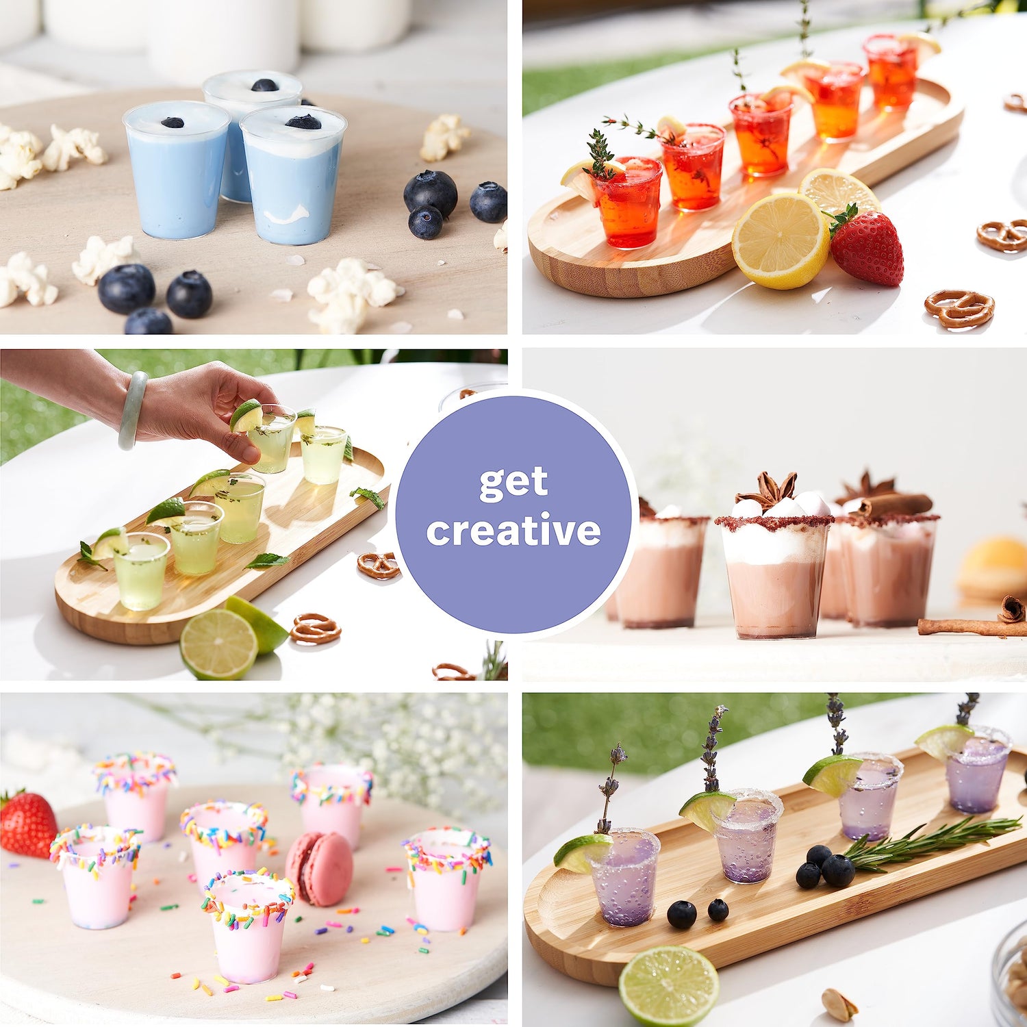 • UNENDLICHE MÖGLICHKEITEN: Abgesehen von der Servierung von Shots aus Tequila, Wodka oder Whiskey bieten diese Stamperl Plastik unendliche Möglichkeiten. Verwenden Sie sie für Verkostungsveranstaltungen, Dessert-Shots, Kondimentschalen, Gelee-Shots, Saucenbehälter oder erstellen Sie eine Probierstation, die Ihre Gäste beeindruckt.
