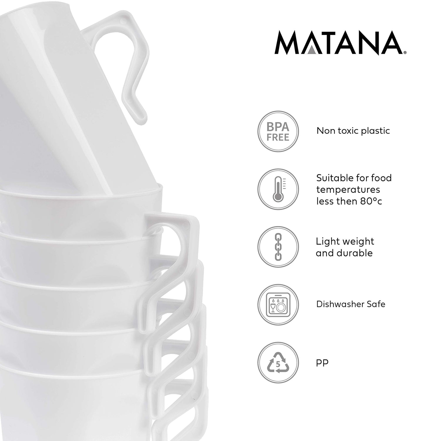 MATANA 50 Weiße Hartplastik Kaffeebecher, 255ml - Kaffee, Tee, Schokolade, Heiße & Kalte Getränke - Stabil & Mehrweg - Camping, Hochzeiten, Picknick, Grillabende, Outdoor-Events, Partys