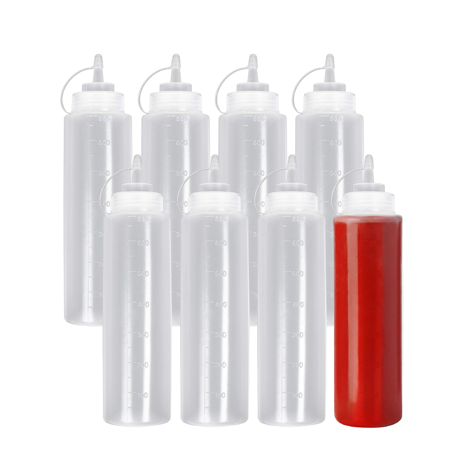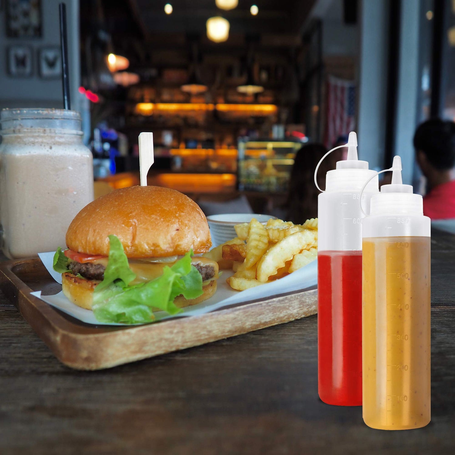 • GROßES FASSUNGSVERMÖGEN: Jede Saucenflasche verfügt über ein geräumiges Fassungsvermögen von 680 ml, was ausreichend Platz bietet, um Ihre Lieblingssaucen und Toppings aufzubewahren und zu servieren. Dies macht sie zur idealen Wahl sowohl für den Hausgebrauch als auch für den gewerblichen Einsatz.