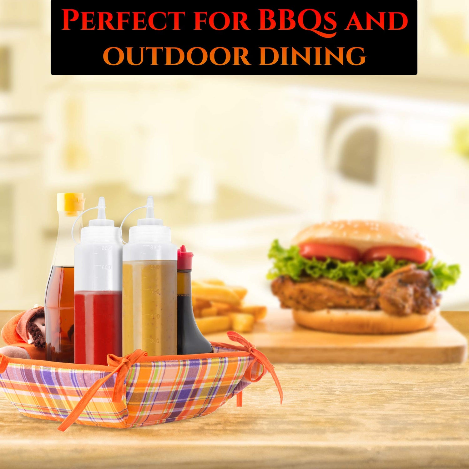 • VIELSEITIGE GEWÜRZSPENDER: Unser Set aus 8 großen Kunststoff-Quetschflaschen mit Deckel eignet sich perfekt zur Aufbewahrung und Dosierung einer breiten Palette von Gewürzen und Saucen, einschließlich Ketchup, Senf, Mayonnaise, Barbecue-Sauce, scharfer Soße, Salatdressings, Vinaigrettes, Olivenöl, Sirupen und Backzutaten.