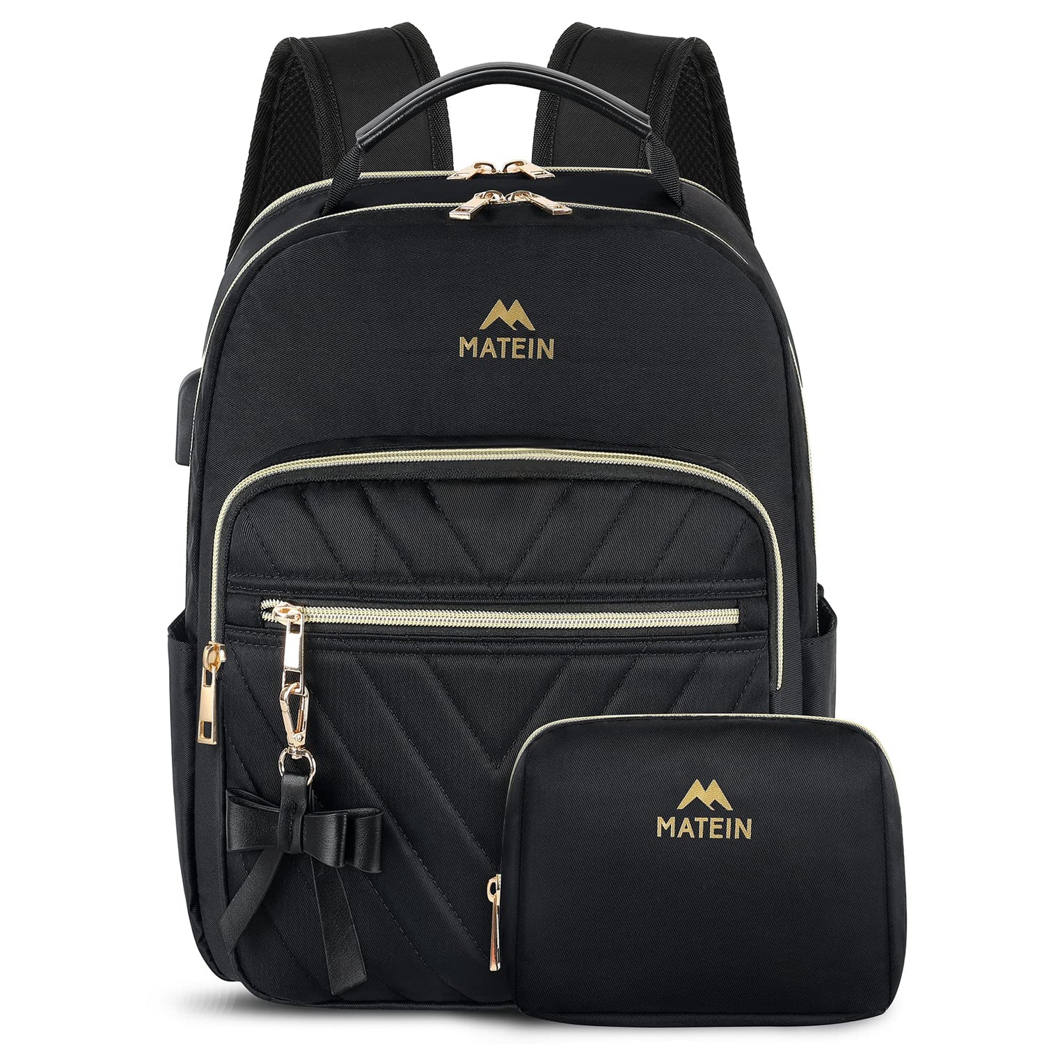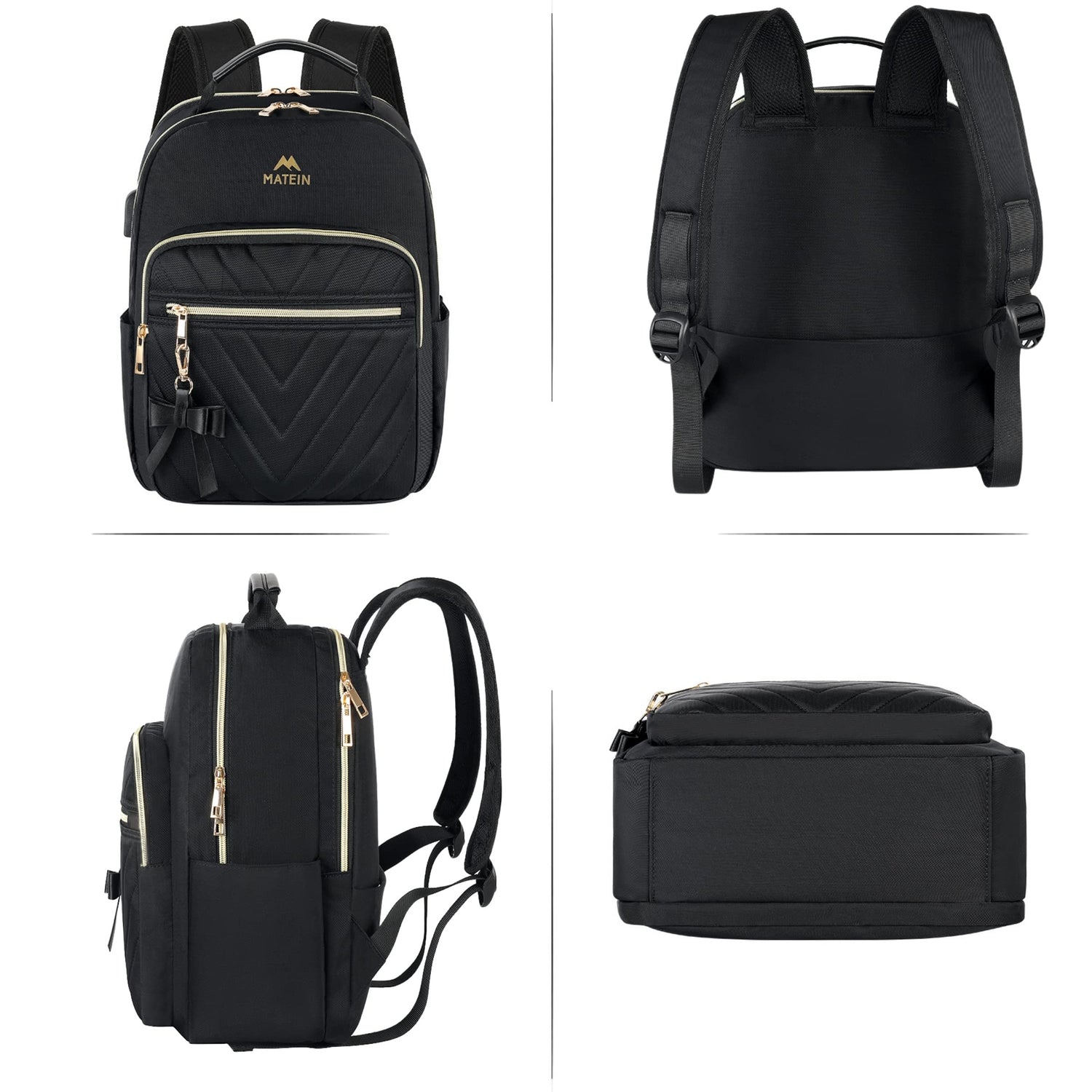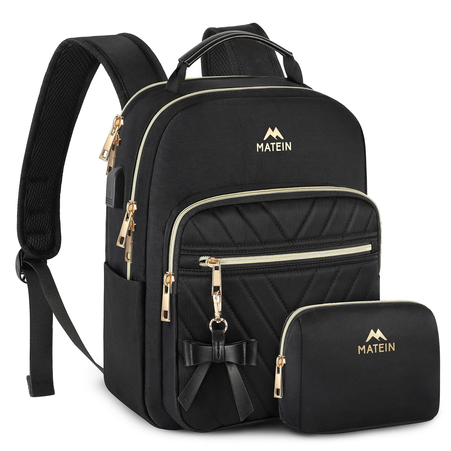 MATEIN Rucksack Damen Klein, Elegant Schulrucksack Geldbeutel Set 2 in 1 Wasserdicht Cityrucksack Casual Daypack mit USB Ladeanschluss Modern Handtasche Rucksacktasche für Reisen Arbeit Schwarz