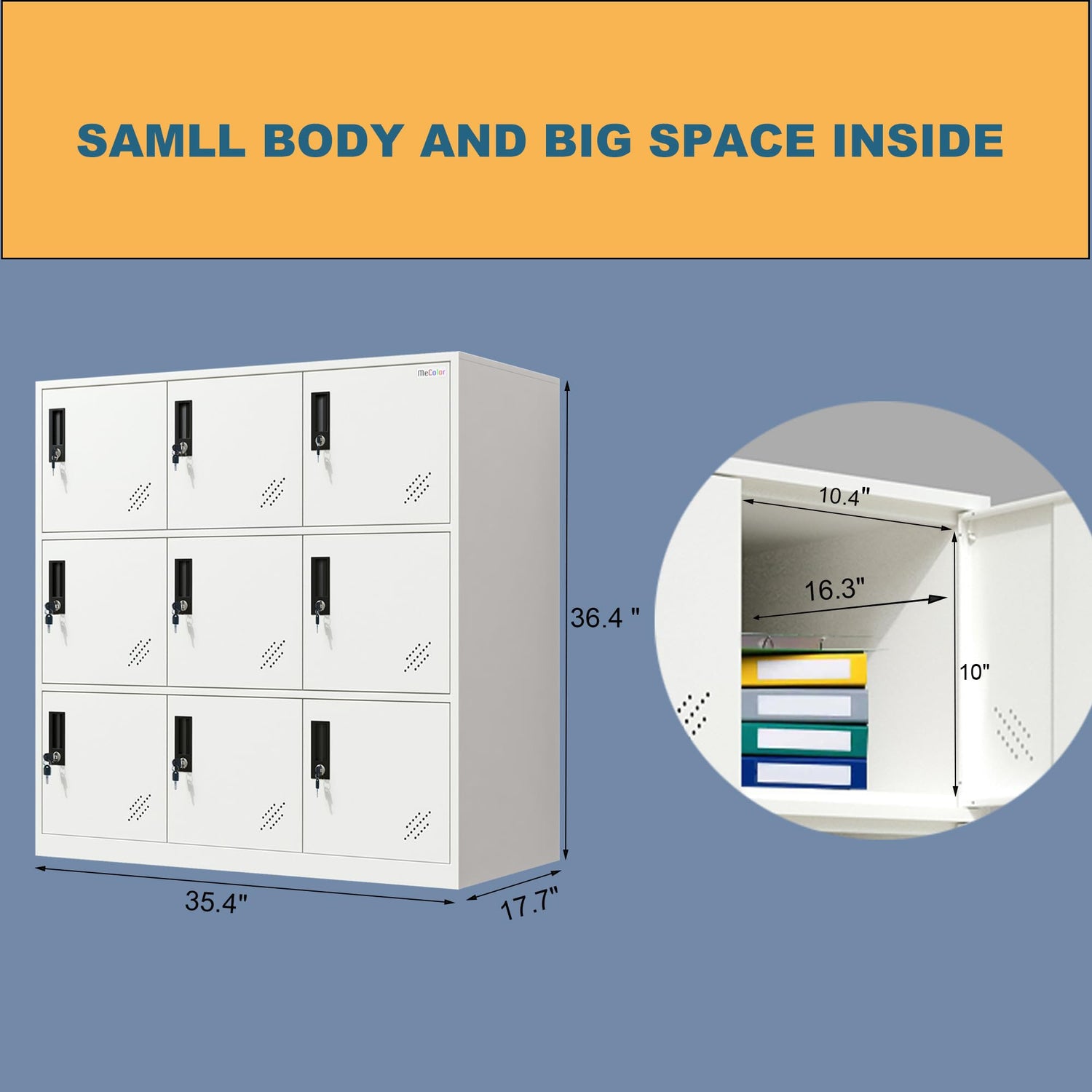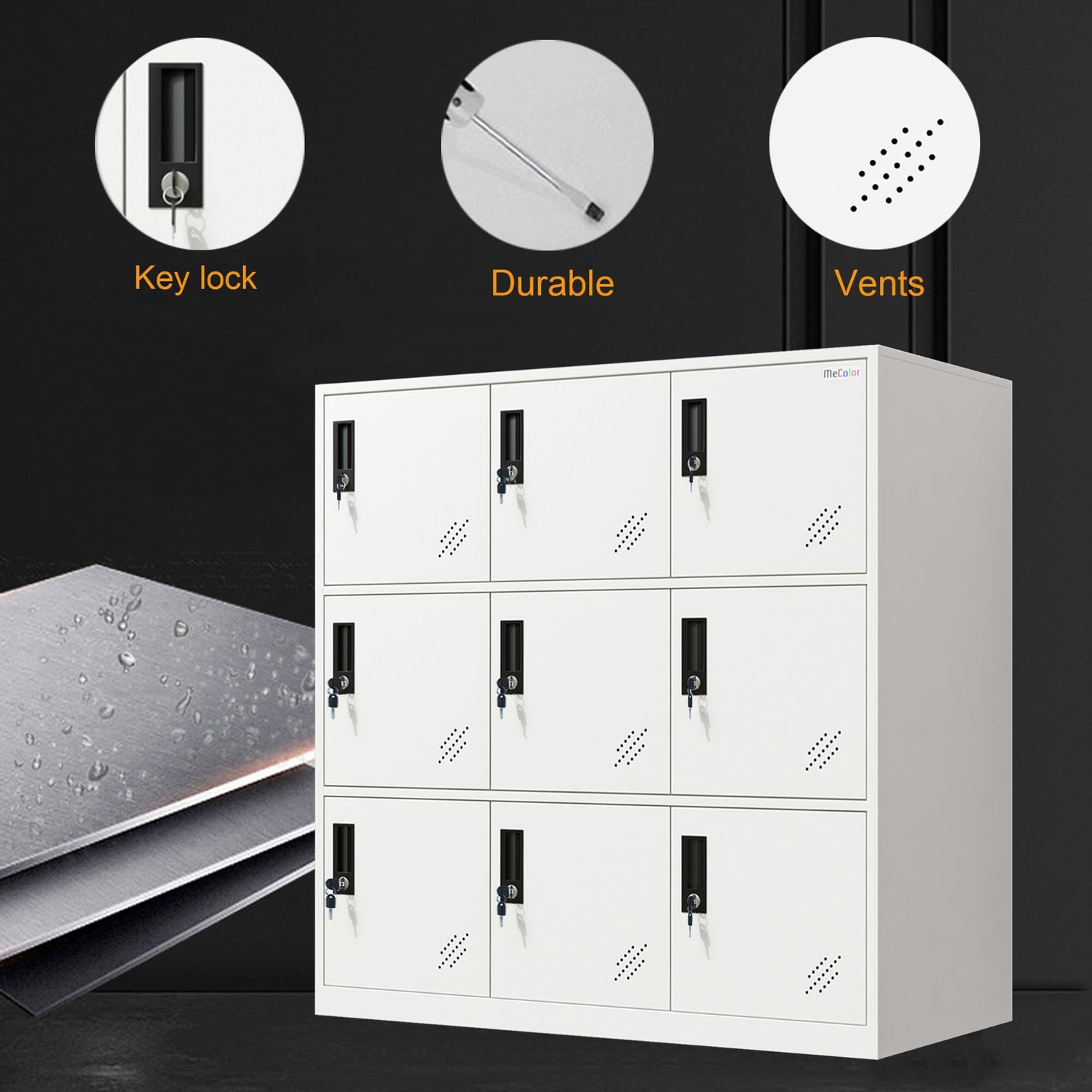• 9-Türschließfach hat Schlüsselschloss: Es gibt 9-Türen für diese metallschrank, jede Tür ist mit Griffschloss und Lüftungsöffnungen ausgestattet, jede Tür kann verriegelt werden, um vor unberechtigtem Zugriff zu stoppen
