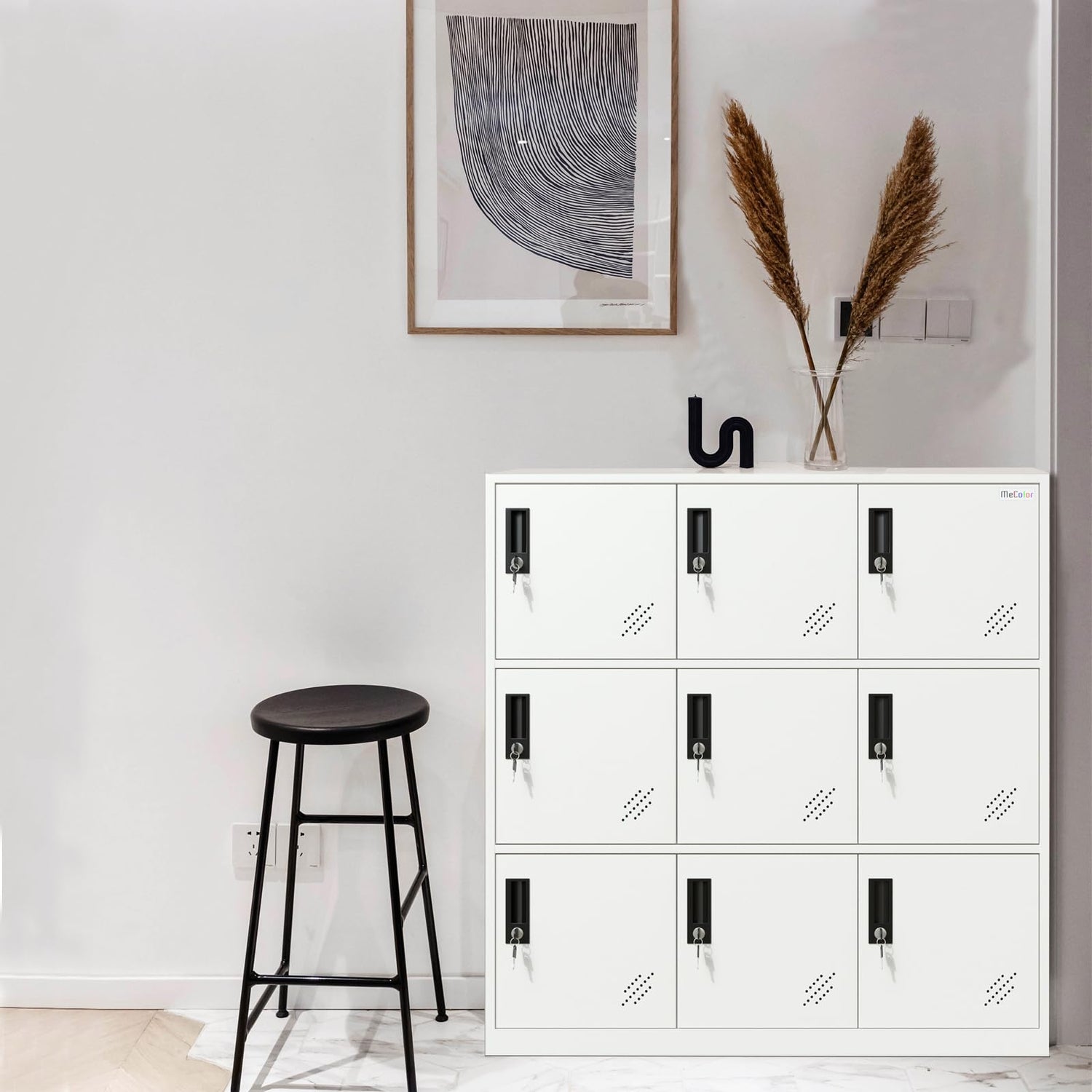 MECOLOR Metallspind für Büro, Aufbewahrungsschrank für Mitarbeiter, Spinde im Fitnessstudio, abschließbarer Stahlspind für Schlafzimmer, 9D, Weiß