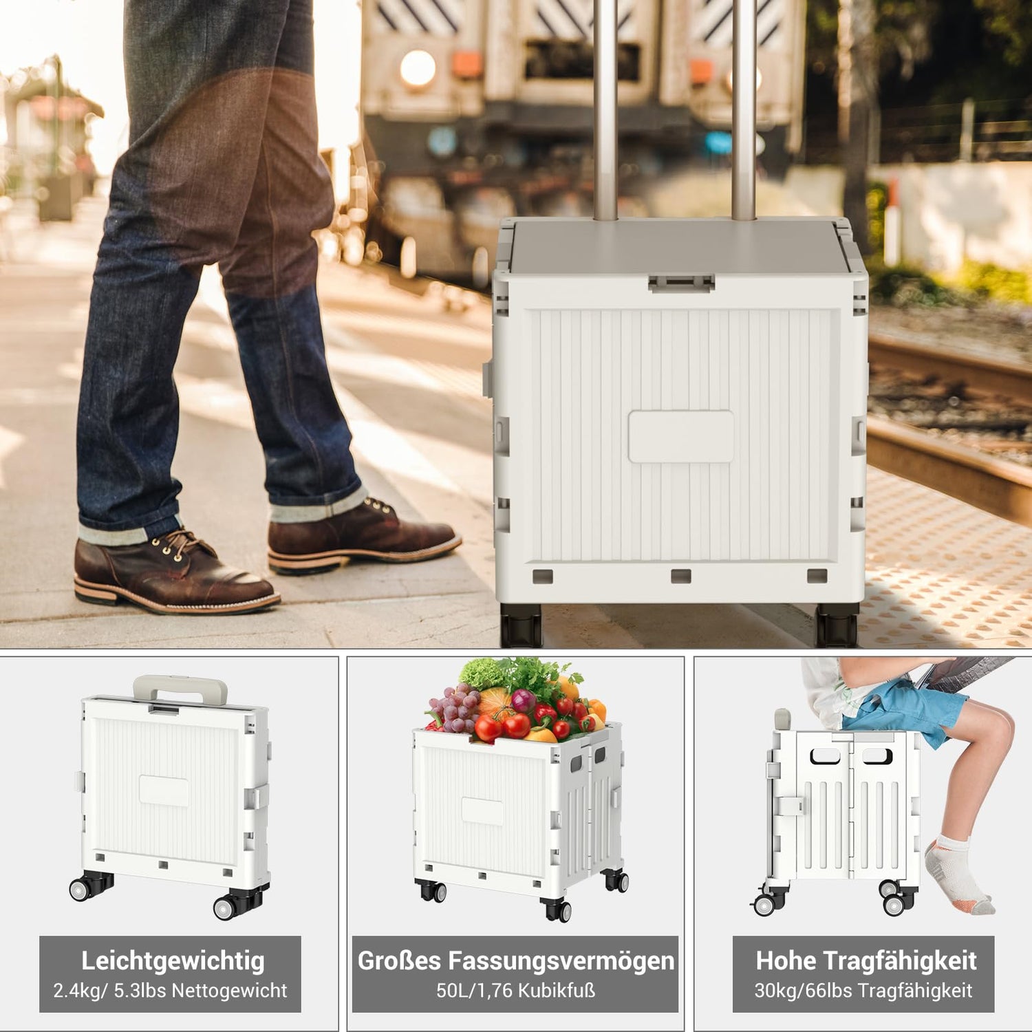 • 【Klappbares Design】Der Einkaufstrolley Klappbar ist sehr praktisch im Gebrauch. Er kann in wenigen Sekunden zusammengeklappt oder entfaltet werden (Faltmaß: 36,5 × 8 × 44 cm) und kann in den Kofferraum, unter das Bett, in den Kleiderschrank oder in den Garagenraum gestellt werden. Er ist leicht zu transportieren und zu lagern
