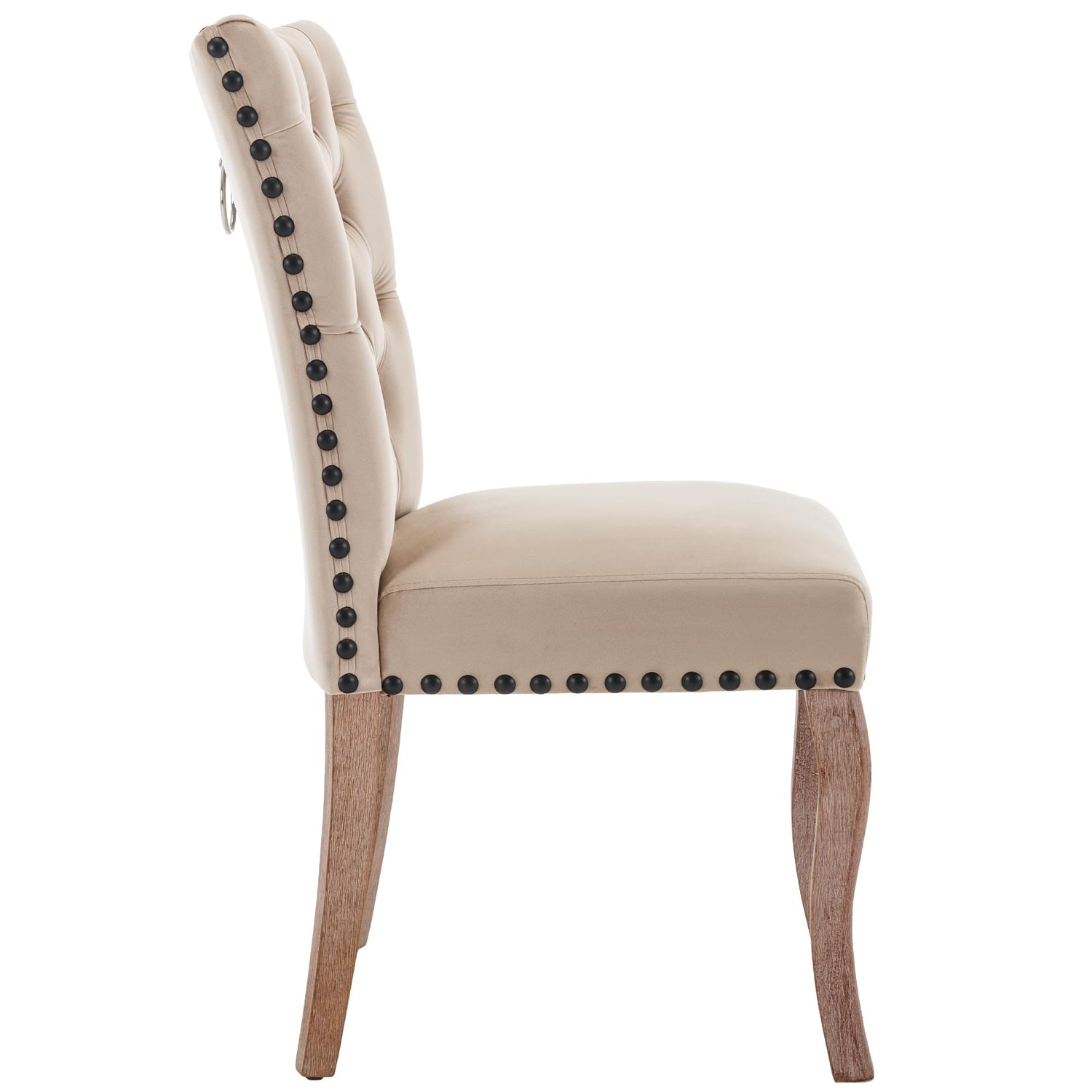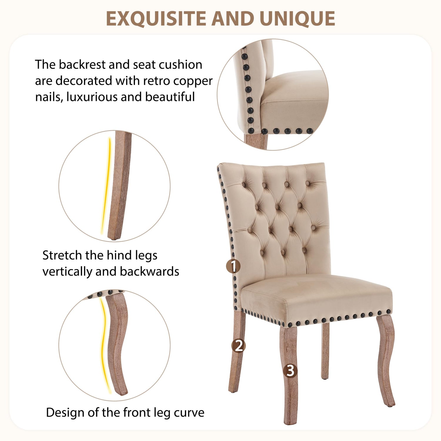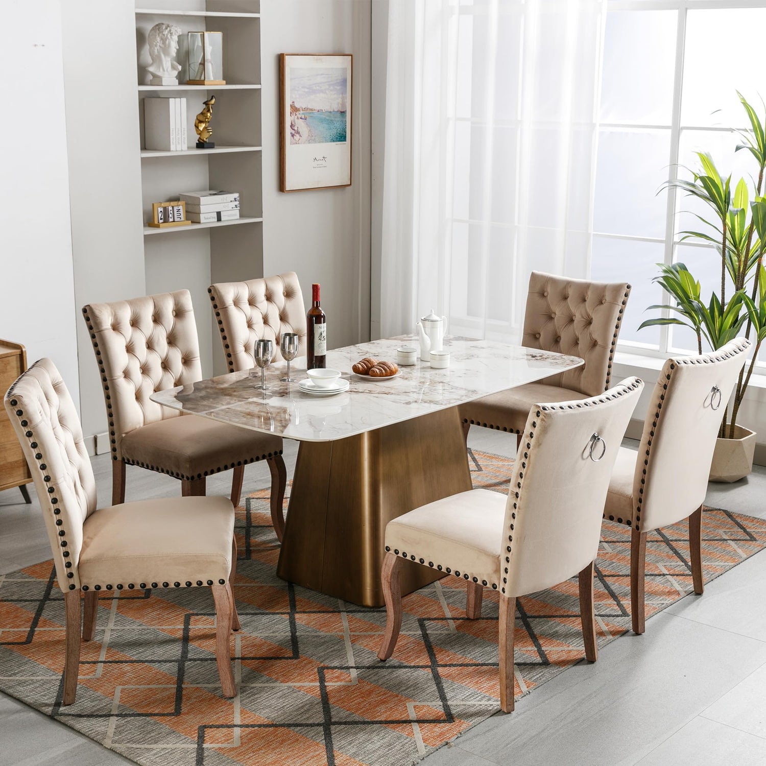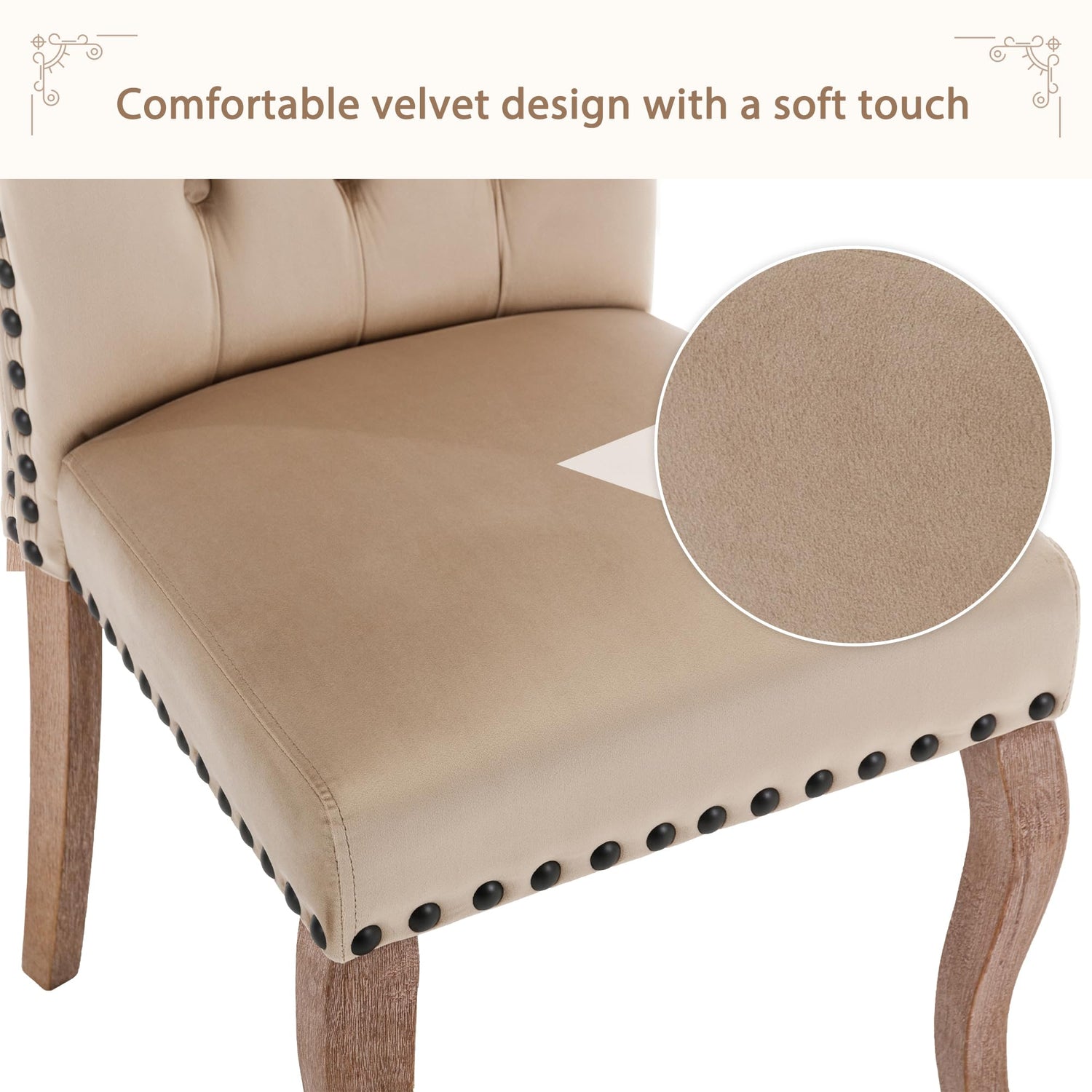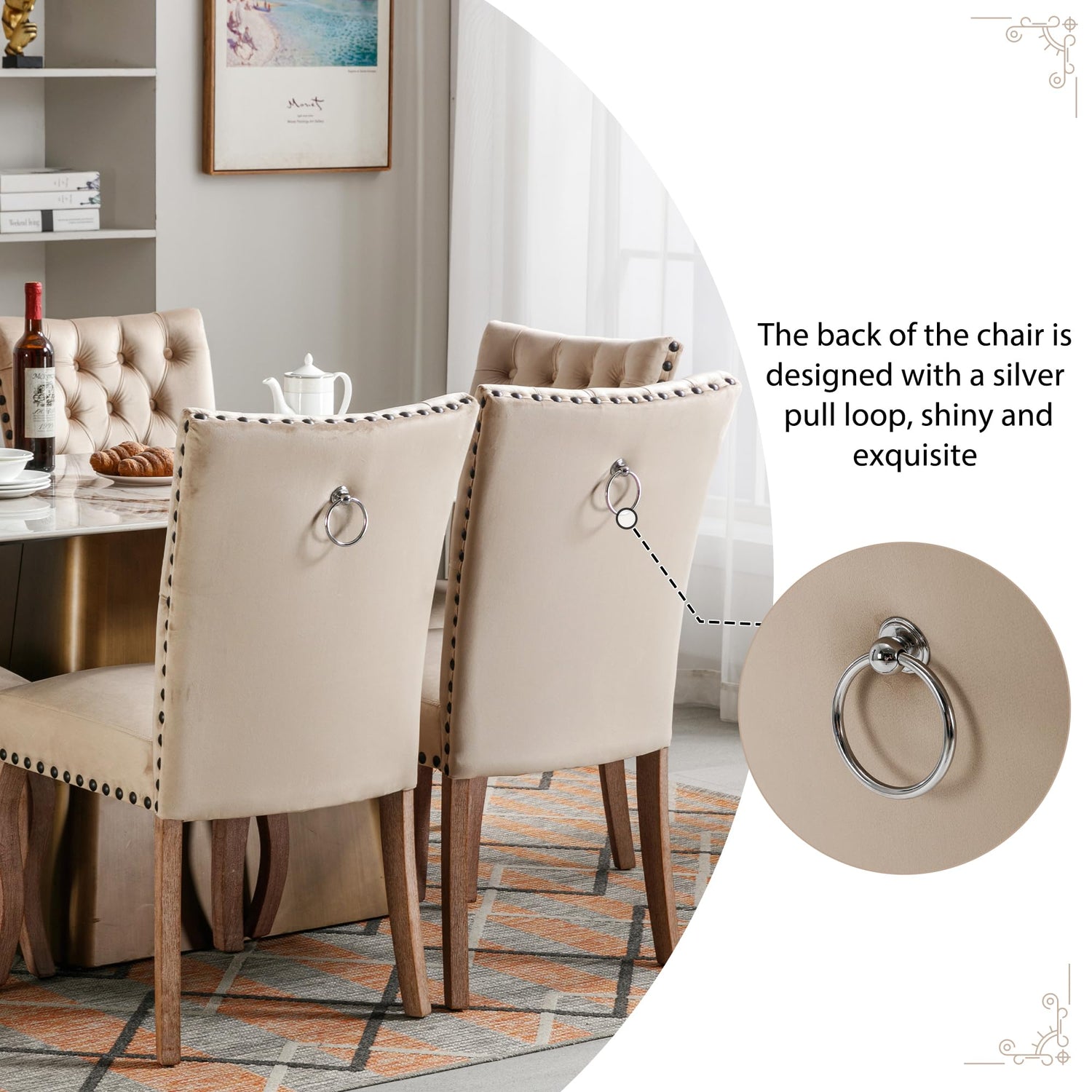 Merax Esszimmerstühle 6er Set, Hoher Rücken, Bequeme Polsterung, Vintage-Samt-Sitzfläche mit Knopfdekoration. Für Büro, Küche, Schlafzimmer. Stabiler massiver Holzrahmen, Helles Kamel