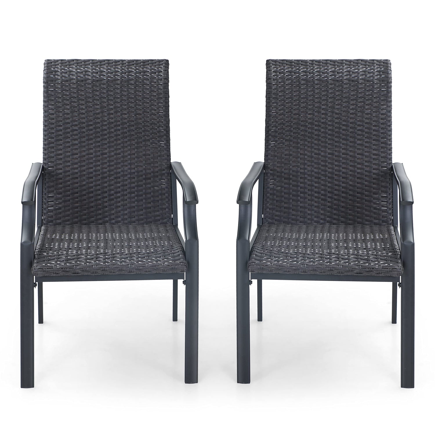 MFSTUDIO Rattan Balkonstuhl 2er Set, Garten Stühle Wetterfest, Schwarzbraunes Rattan, Stahlrahmen, Ergonomischer Hochlehner, Outdoor Sessel für Terrasse, Balkon, Bistro