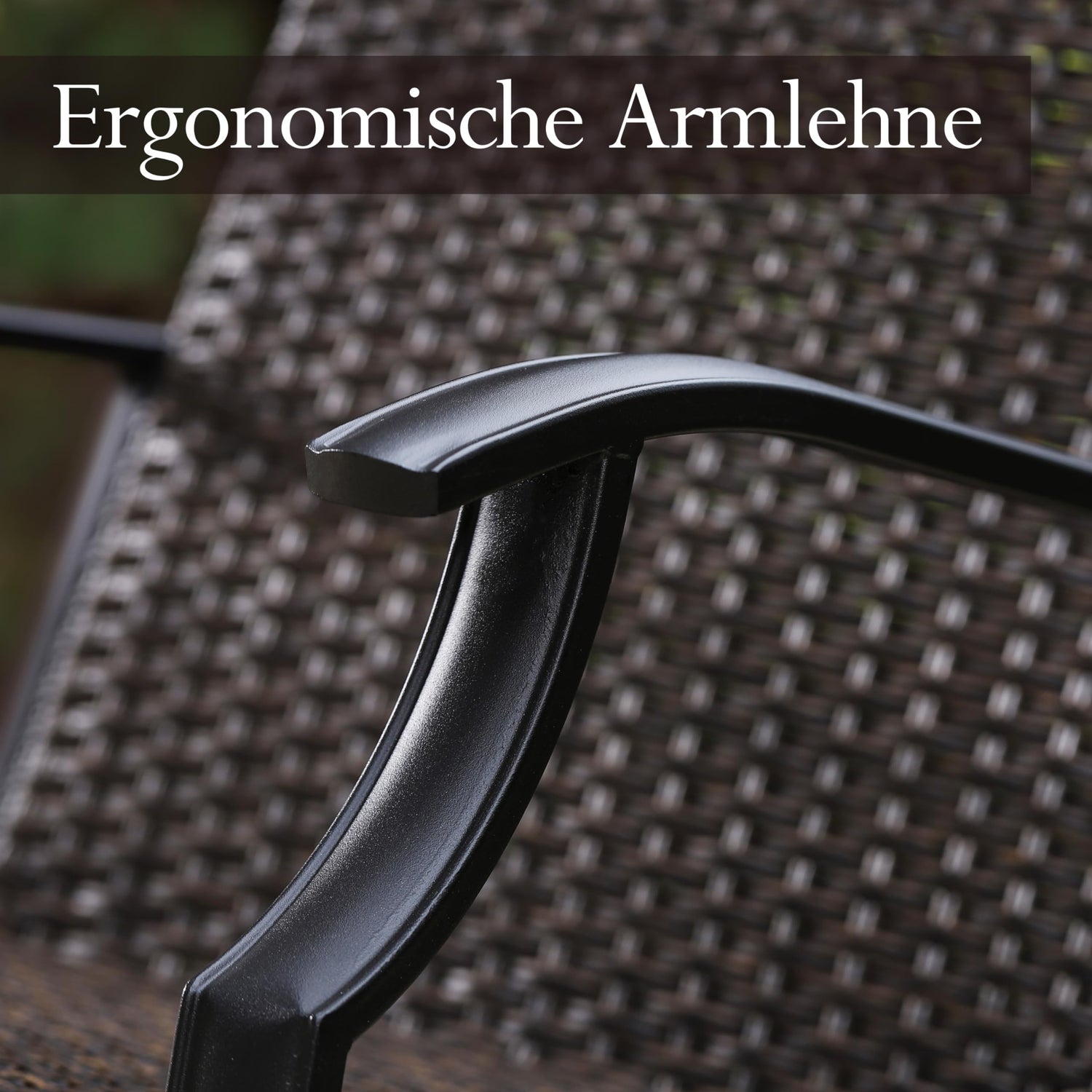 • 【E-Beschichteter Stahlrahmen】: Die rattan stühle bestehen aus solidem und langlebigem Schwarzem Stahlmaterial. Durch den E-Beschichtungspulverprozess bildet sich eine Schutzschicht aus schwarzem Goldpulver auf der Oberfläche der terrassenstühle, die resistent gegen Sonne und Regen ist.