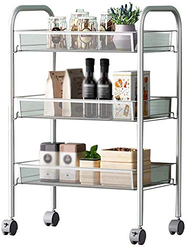 MHBGX Multifunktionaler Vorratswagen,Getränke-Food-Service-Tablettwagen 3-Stufiger Mobiler Karbonstahl Mit Bremse Universalrad, Kapazität 10 Kg Pro Schicht Küchen-Lagerwagen Mehrzweck-Handwagen,Silbe