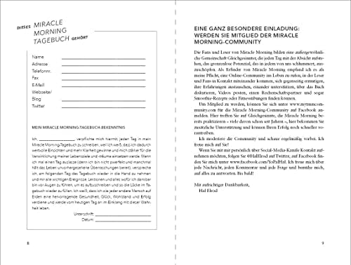Mit dem Miracle Morning-Programm fördern Sie Ihre persönliche Entwicklung und ziehen so unweigerlich Erfolg auf allen Ebenen an. Dieses Buch erklärt die Grundprinzipien und bietet Ihnen Platz ein Jahr lang täglich Ihre Gedanken einzutragen. Zahlreiche Auswertungen bieten Ihnen den Raum über Ihre Erlebnisse zu reflektieren, um aus ihnen zu lernen.
