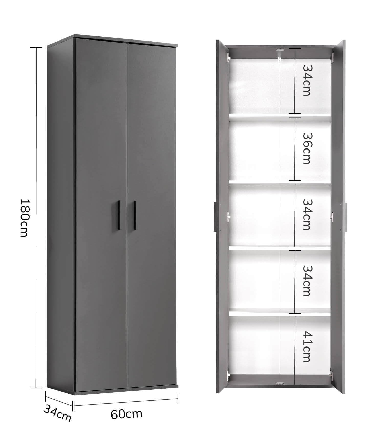 mokebo® Mehrzweckschrank 60cm Breite 'Der Lange', Aktenschrank, Büroschrank oder Schuhschrank in 60x180x34 cm (B/H/T), auch als Vorratsschrank oder Schrank aus Holz in Anthrazit-Schwarz