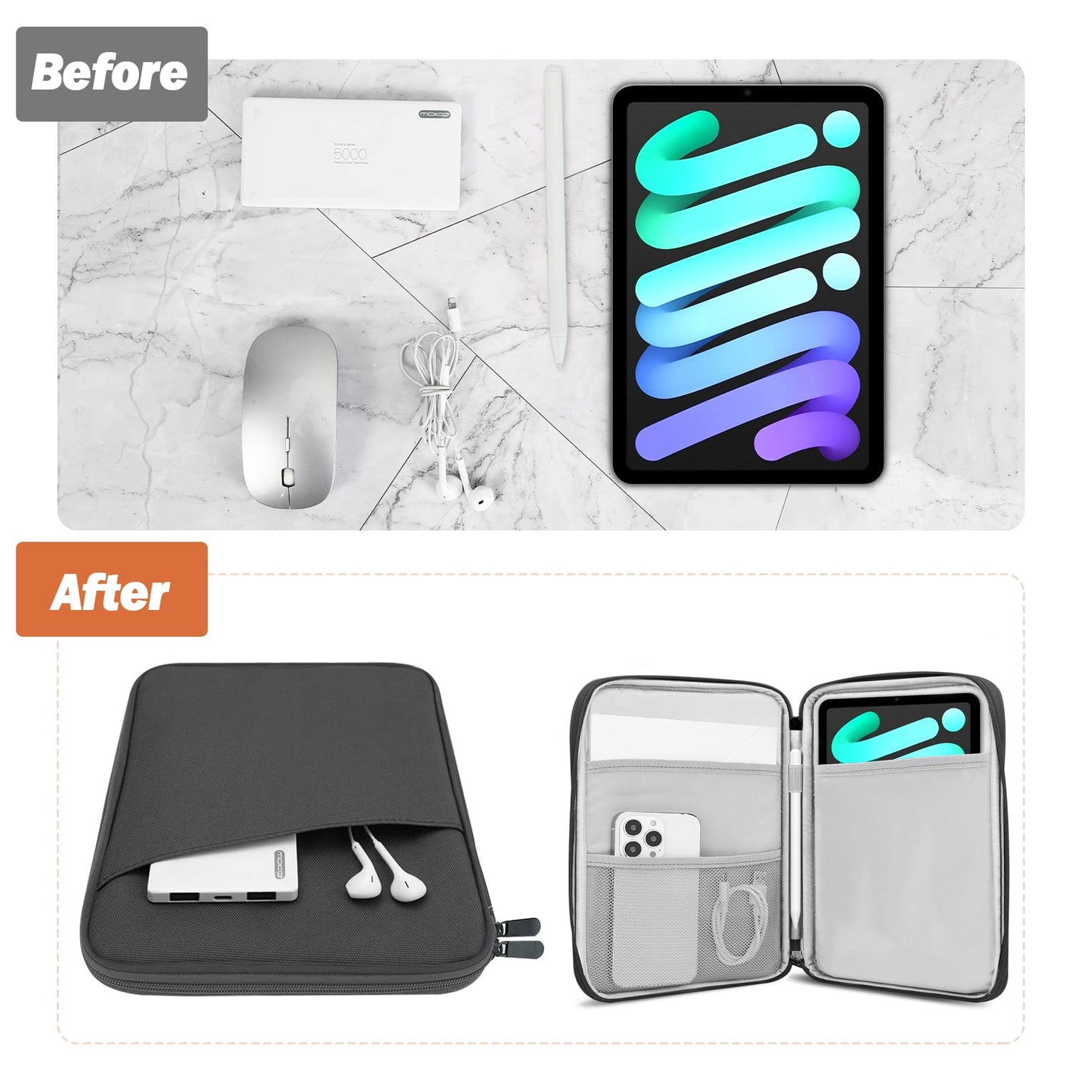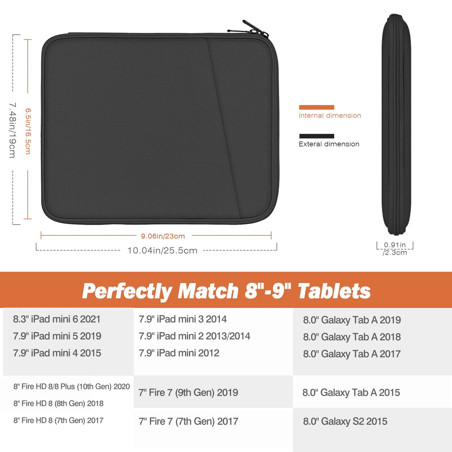 MoKo 8-9 Zoll Tablet Tasche, passend für 8,3 Zoll iPad Mini A17 Pro 2024, iPad Mini 6/5/4/3/2/1, Galaxy Tab A7 Lite 8.7 / Tab A 8.0/Tab A 8.4, Schutzhülle Tragetasche mit schräger Tasche, Dunkel Grau