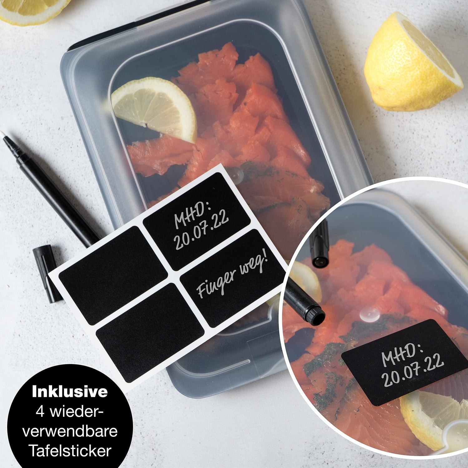 • SICHER VERPACKT - Perfektes Verschlusssystem zur Aufbewahrung im Kühlschrank, lange Frische und Haltbarkeit sowie sicheren Transport der Lebensmittel